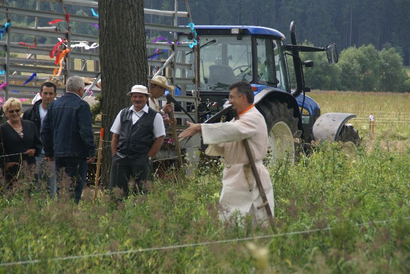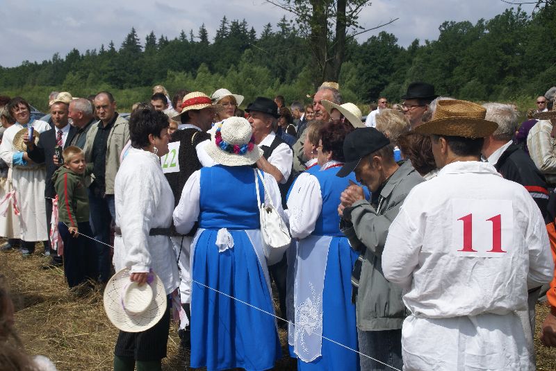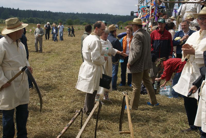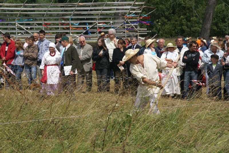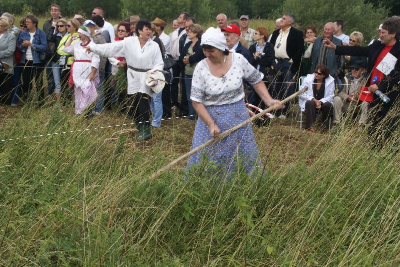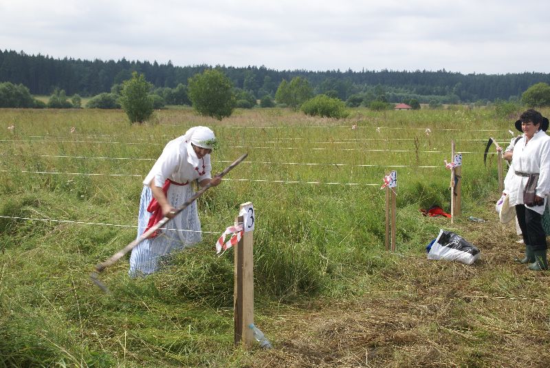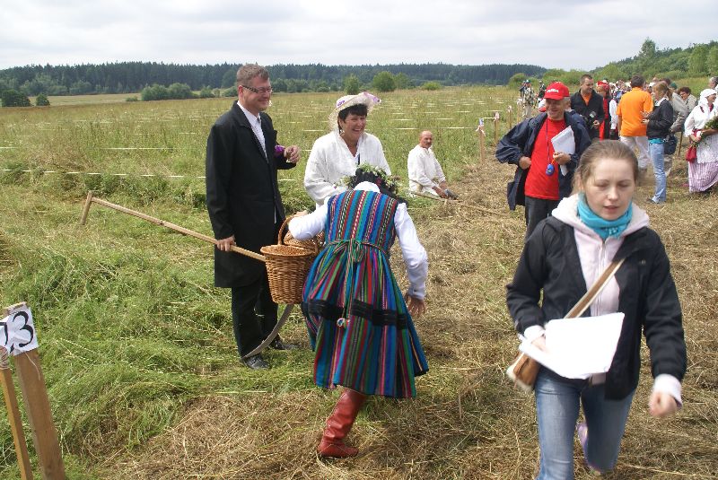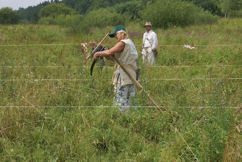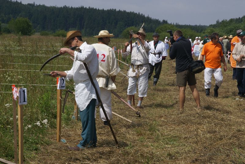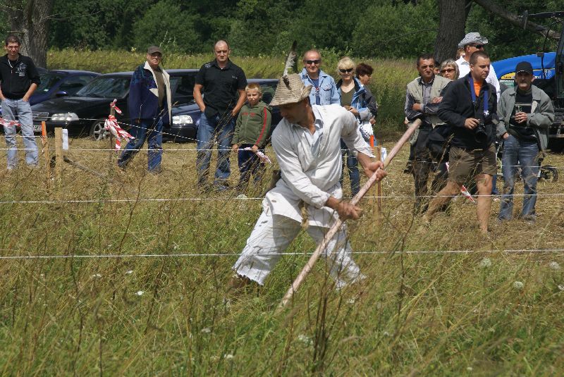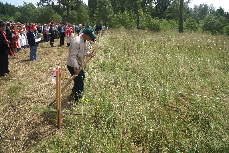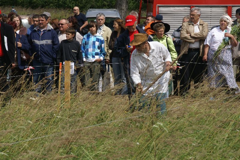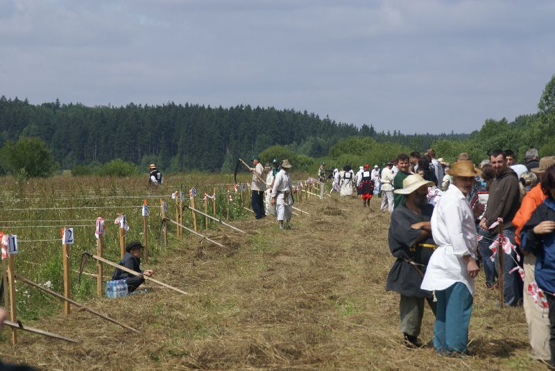 Zawodnicy wyruszyli na łąki po porannej mszy świętej odprawionej przez proboszcza parafii Pomocne ks. Marka Lacha. Ich wysiłki oceniało pięcioosobowe jury - sędzia główny Edward Lityński, Zbigniew Tusiński, Wiesław Gołuch, Janusz Ptaszyński i Leszek Gawron. W konkurencji koszenia dla pań zwyciężyła Barbara Brzuszek z Pomocnego - w nagrodę otrzymała mikrofalę oraz kryształową statuetkę . Tuż za nią znalazła się Ewa Kulpka z Krotoszyc (zdobyła robot kuchenny). Trzecie miejsce zajęła Anna Radomska z Chełmca i wygrała zestaw naczyń.