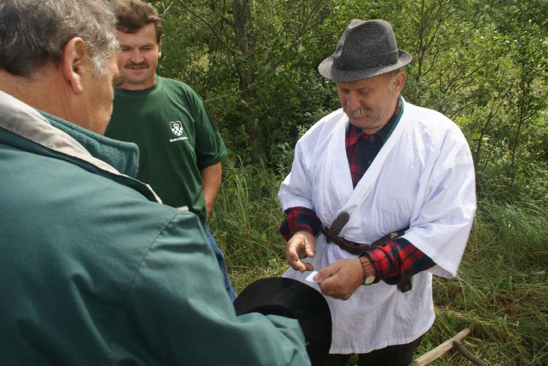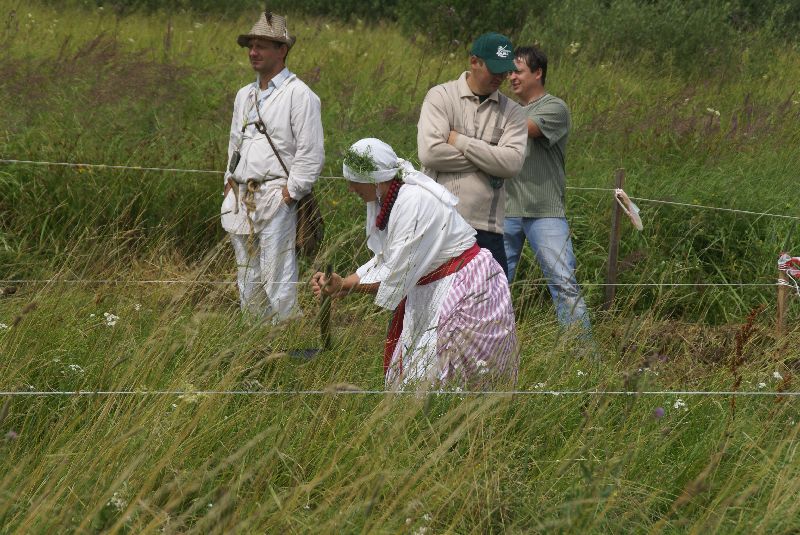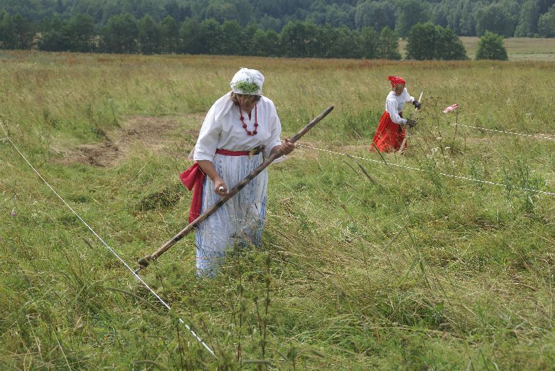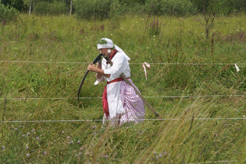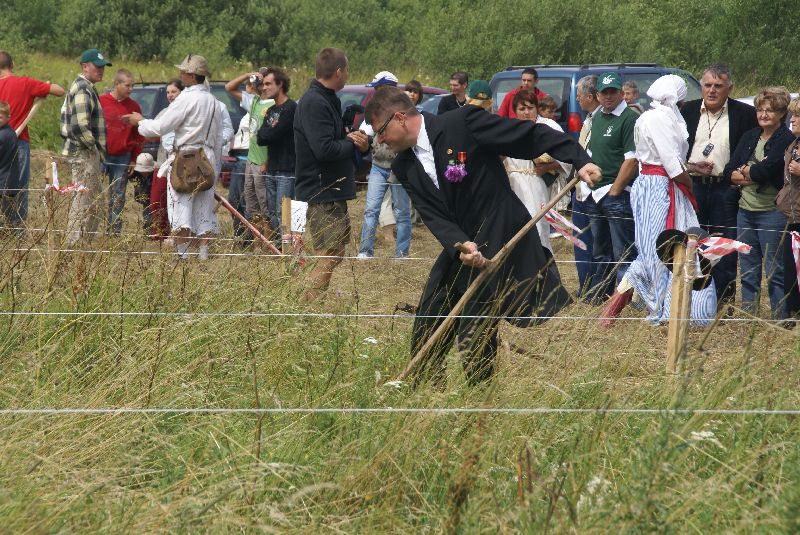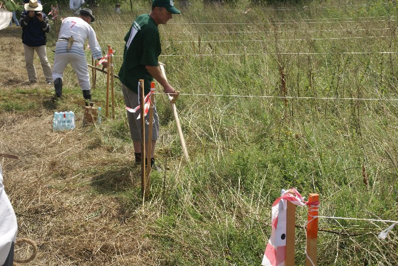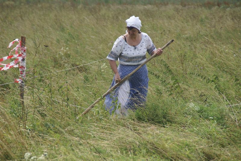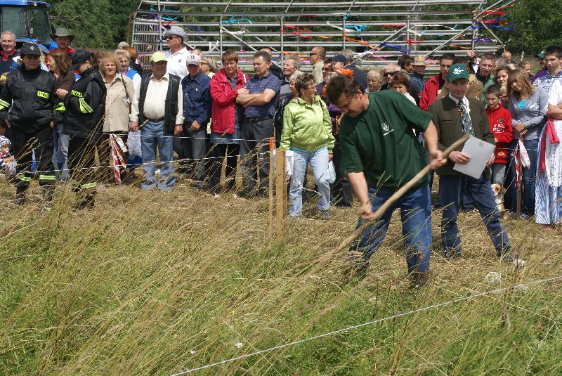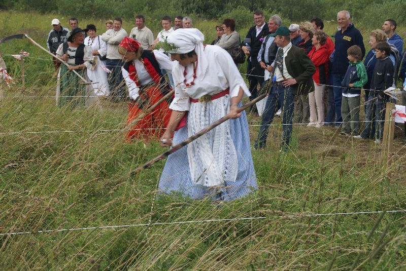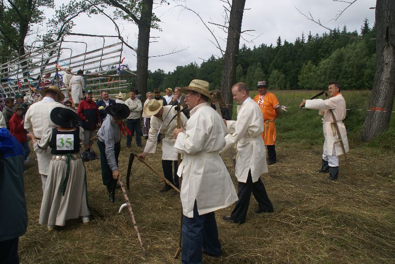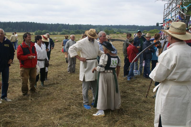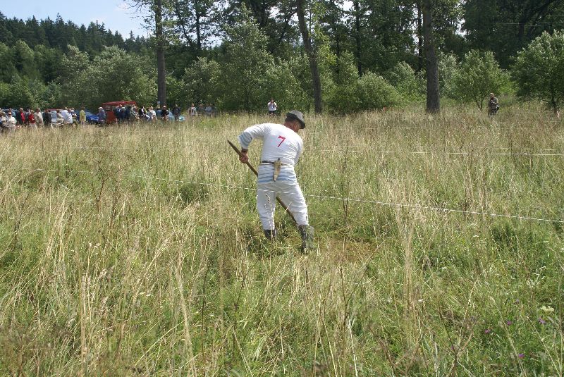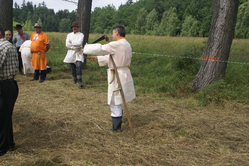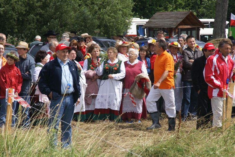 Zawodnicy wyruszyli na łąki po porannej mszy świętej odprawionej przez proboszcza parafii Pomocne ks. Marka Lacha. Ich wysiłki oceniało pięcioosobowe jury - sędzia główny Edward Lityński, Zbigniew Tusiński, Wiesław Gołuch, Janusz Ptaszyński i Leszek Gawron. W konkurencji koszenia dla pań zwyciężyła Barbara Brzuszek z Pomocnego - w nagrodę otrzymała mikrofalę oraz kryształową statuetkę . Tuż za nią znalazła się Ewa Kulpka z Krotoszyc (zdobyła robot kuchenny). Trzecie miejsce zajęła Anna Radomska z Chełmca i wygrała zestaw naczyń.