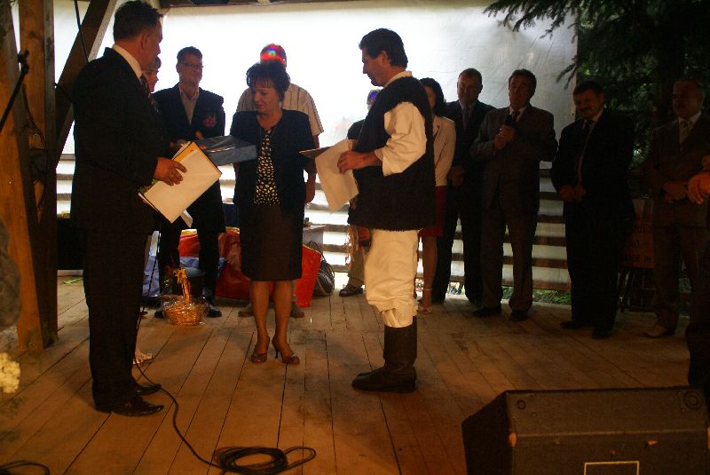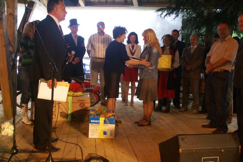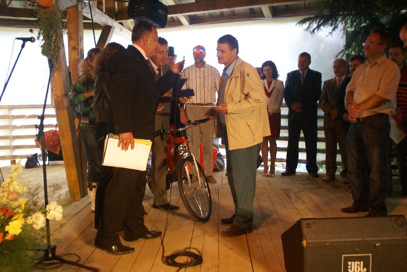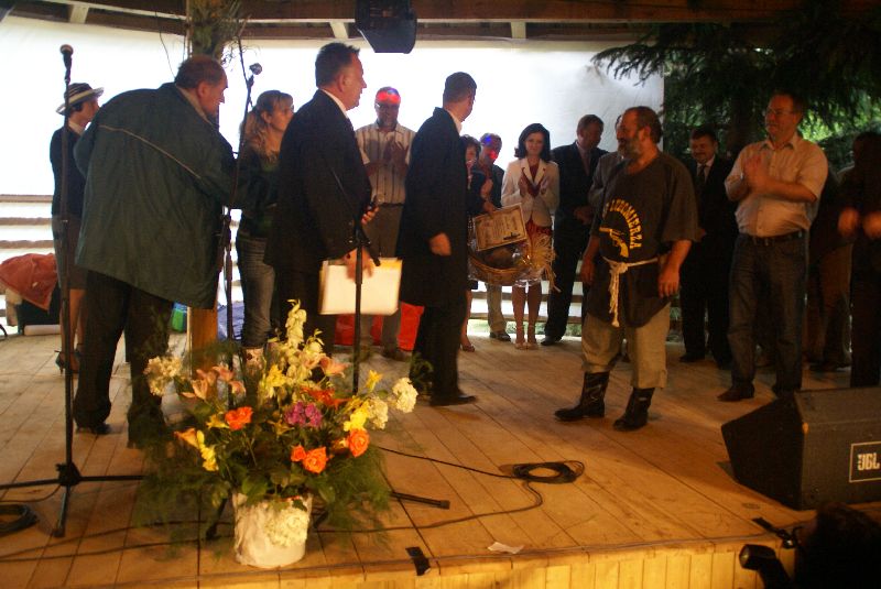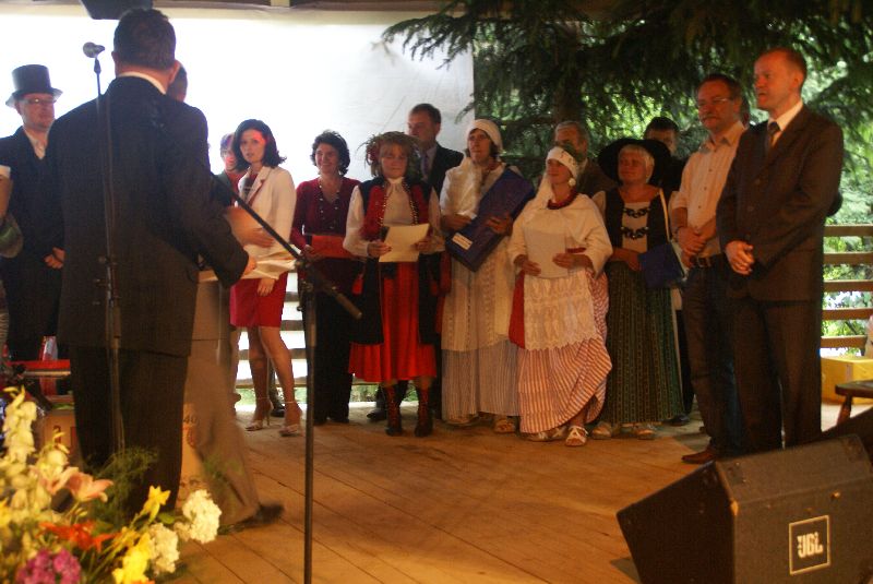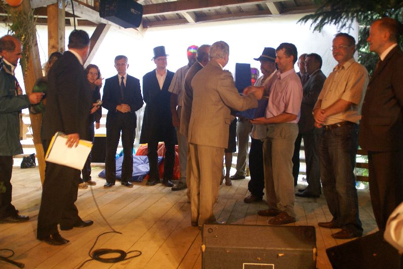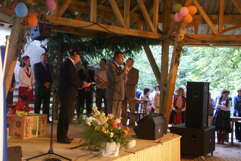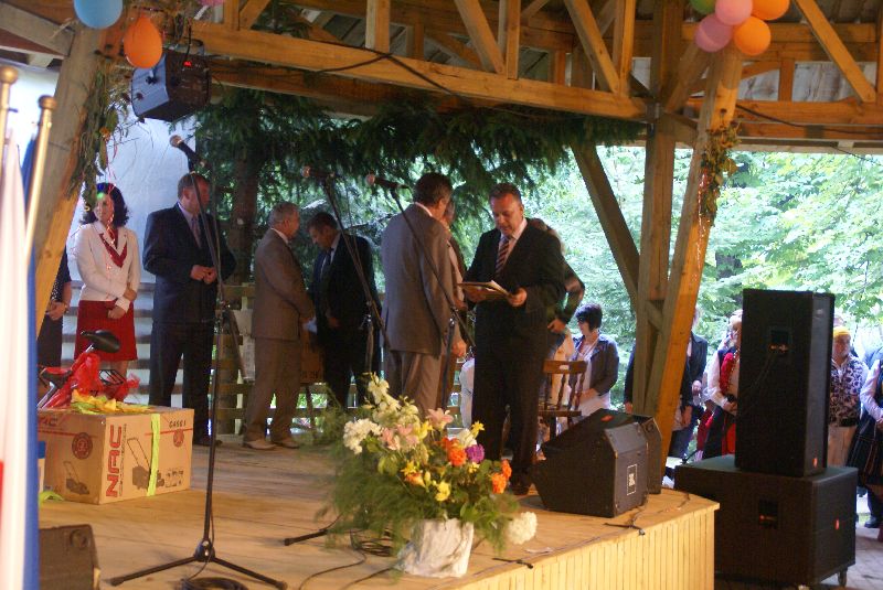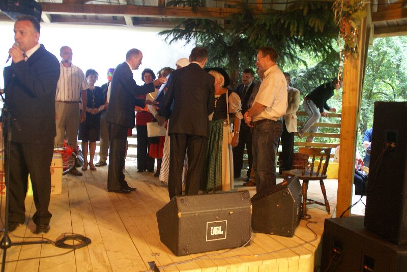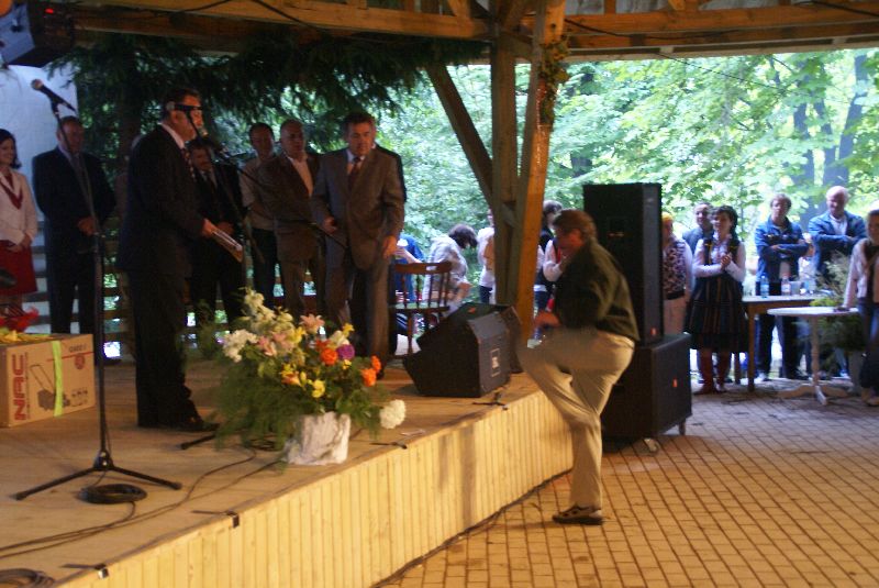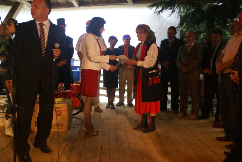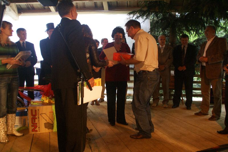 Zaproszeni goście otrzymali z rąk wójta Gminy Męcinka Zbigniewa Przychodzenia okolicznościowe upominki - statuetki z logo Muchowskiej Kosy Warto dodać, że Muchowska Kosa odbyła się po raz pierwszy w nowych warunkach. Na placu przed Muchowskim Pałacykiem wykonana została nowa, przestronna wiata oraz ścieżki dojazdowe w ramach zadania inwestycyjnego Powiatu Jaworskiego z programu EWT Polska-Czechy.
