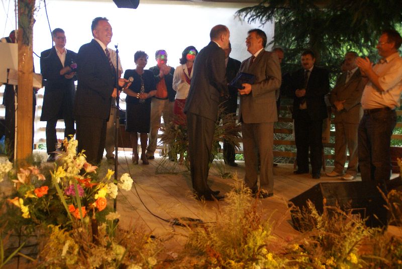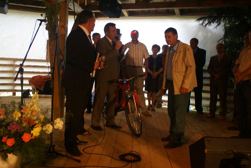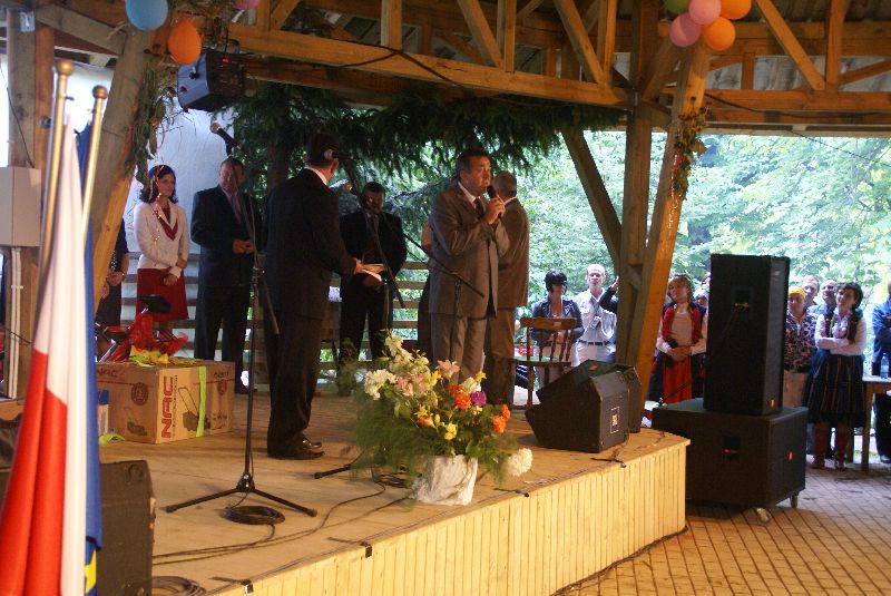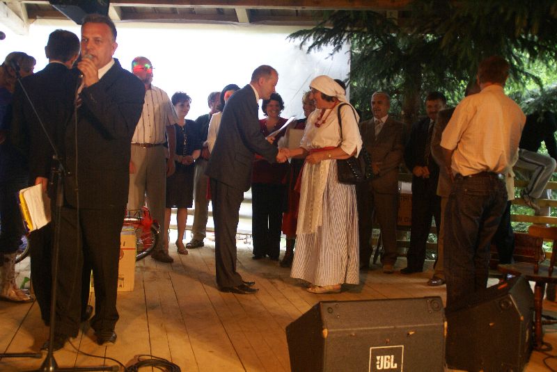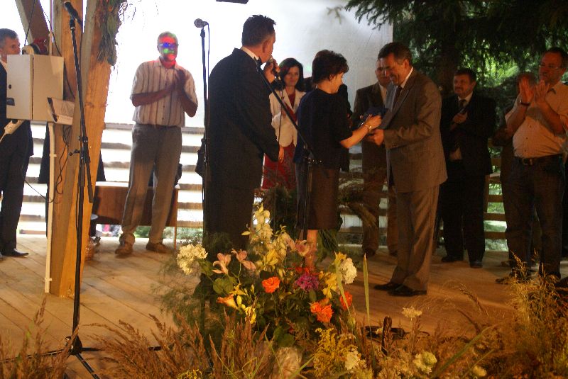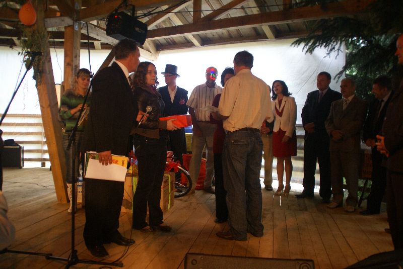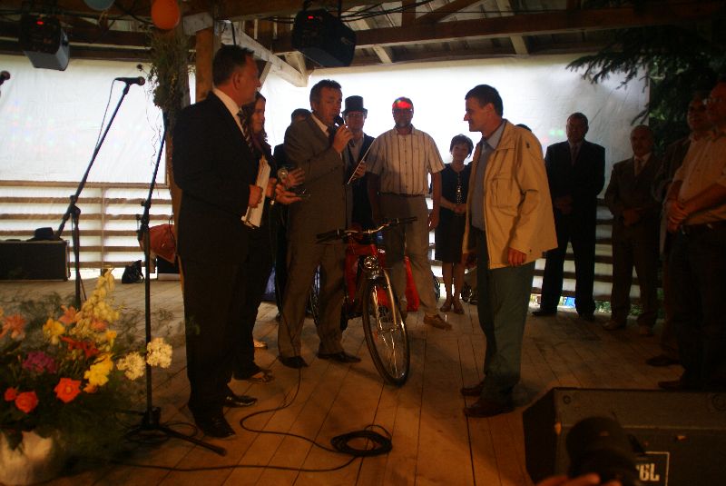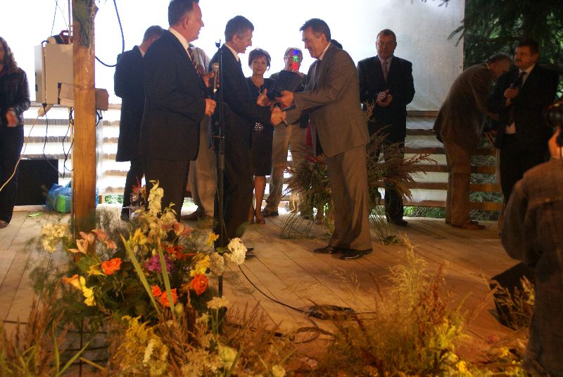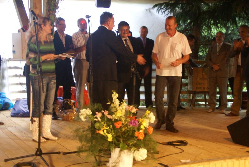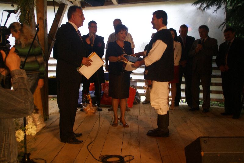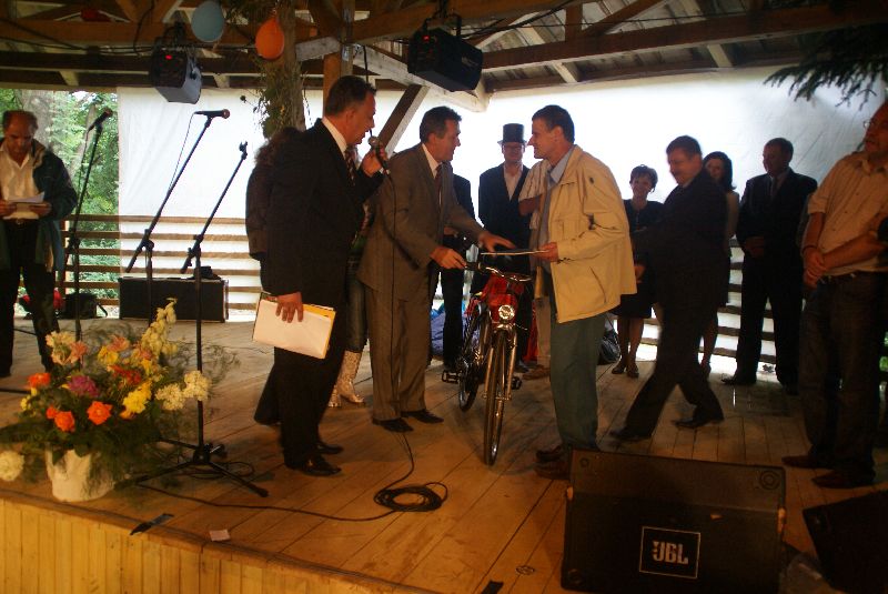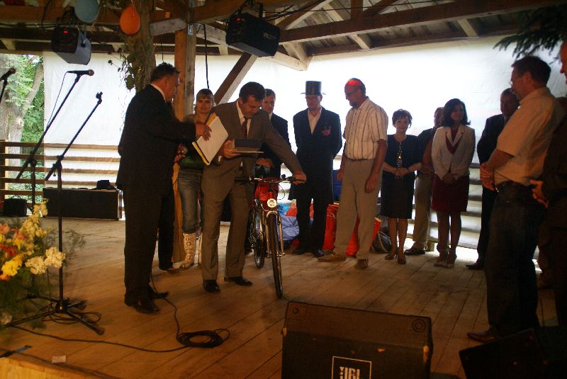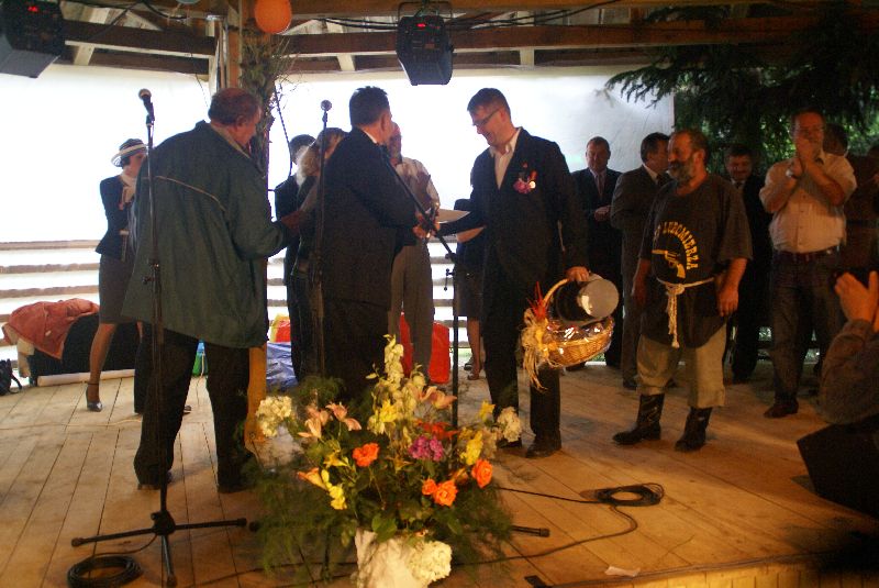 Zaproszeni goście otrzymali z rąk wójta Gminy Męcinka Zbigniewa Przychodzenia okolicznościowe upominki - statuetki z logo Muchowskiej Kosy Warto dodać, że Muchowska Kosa odbyła się po raz pierwszy w nowych warunkach. Na placu przed Muchowskim Pałacykiem wykonana została nowa, przestronna wiata oraz ścieżki dojazdowe w ramach zadania inwestycyjnego Powiatu Jaworskiego z programu EWT Polska-Czechy.
