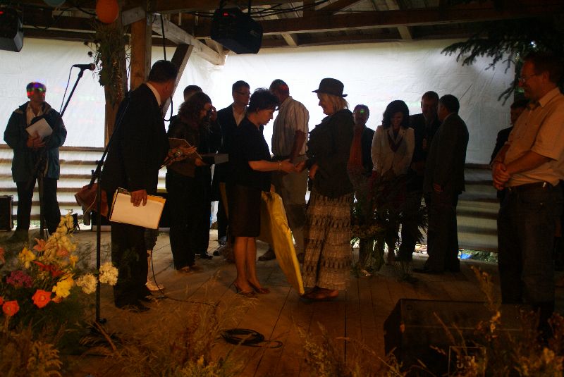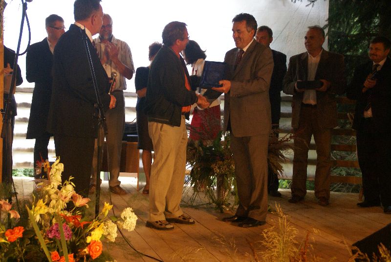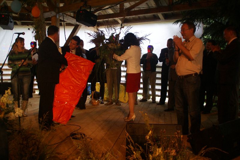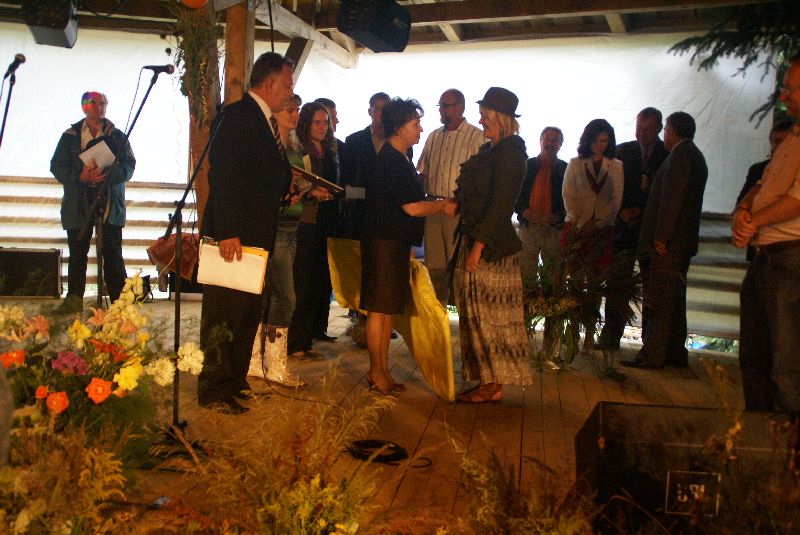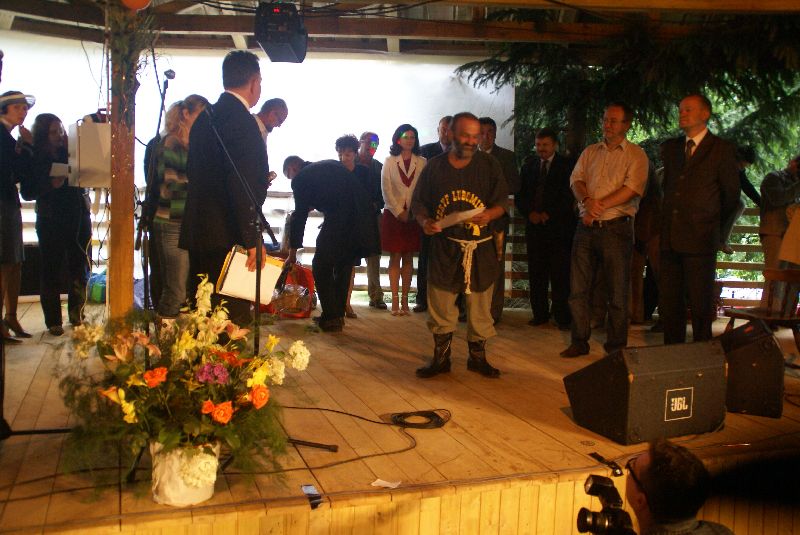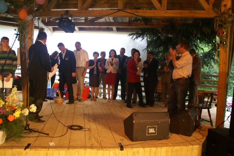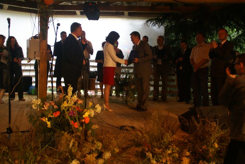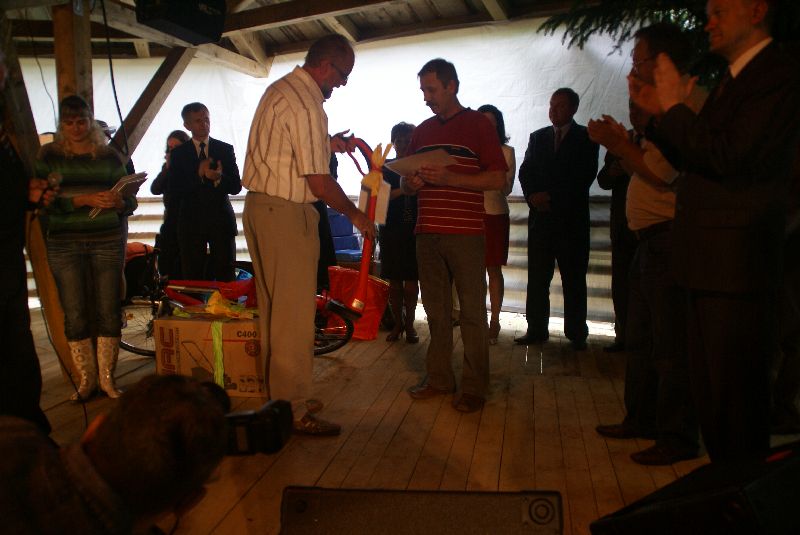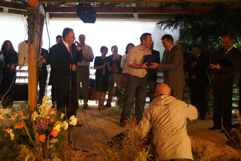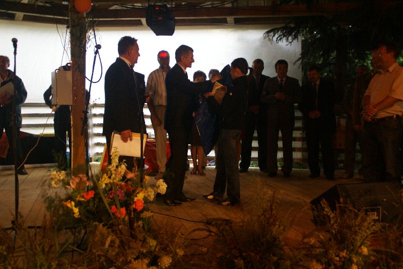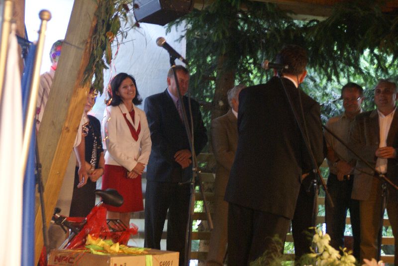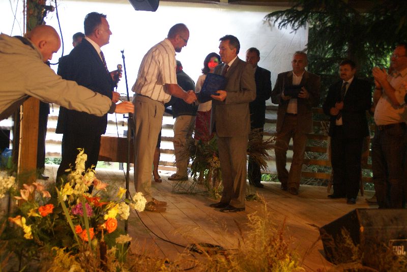 Zaproszeni goście otrzymali z rąk wójta Gminy Męcinka Zbigniewa Przychodzenia okolicznościowe upominki - statuetki z logo Muchowskiej Kosy Warto dodać, że Muchowska Kosa odbyła się po raz pierwszy w nowych warunkach. Na placu przed Muchowskim Pałacykiem wykonana została nowa, przestronna wiata oraz ścieżki dojazdowe w ramach zadania inwestycyjnego Powiatu Jaworskiego z programu EWT Polska-Czechy.