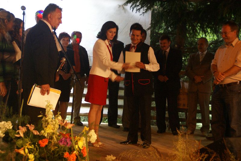 W układaniu kompozycji kwiatowych najlepsza okazała się Anna Prońko z gm. Prochowice, której pasją są ogrody i piękne kwiaty. Drugie miejsce w tej konkurencji zdobył Daniel Rzepa z gm. Męcinka. Trzecie miejsce zajęła Ewelina Czaja z gm. Męcinka - studentka, która interesuje się turystyką i florystyką. Zdobywcy trzech pierwszych miejsc otrzymali leżaki i pamiątkowe statuetki. Oliwia Ochrombel z Nowej Męcinki i Justyna Krok z Przybyłowic zdobyły wyróżnienia i otrzymały opryskiwacze oraz statuetki. Bukiety układały również Maria Frątczak (Pomocne), Aleksandra Matuszak i Ludwika Piszczur (gm. Świerzawa), Anita Rudaniecka (Słup), Danuta Jasińska, Dorota Maćkowiak i Elżbieta Jakubowska (gm. Pakosław) i Anna Radomska (Chełmiec). Kompozycje oceniały Lucyna Ochrombel (przewodnicząca), Mariola Mikołajczyk i Anna Zabawa.