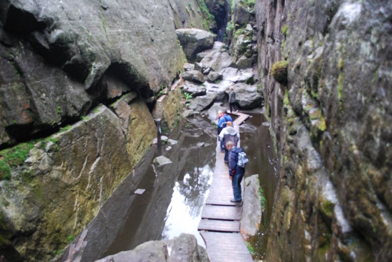 Nasza wyprawa zaczęła się oczywiście od podróży. Trwała trochę dłużej niż przewidziano, bo nasz kierowca jechał zgodnie z przepisami. Nam, czyli uczestnikom , to nie przeszkadzało, ponieważ mogliśmy wykazać się wokalno-muzycznymi talentami. Mam nadzieję, że nasz śpiew był miły dla ucha. Po przybyciu na miejsce okazało się, że podjęliśmy właściwą decyzję - deszcz przestał padać. Nasz cel to Szczeliniec Wielki, najwyższy szczyt Gór Stołowych (919m n.p.m.), który był pierwszym punktem naszej wyprawy. Ruszamy, oczywiście cały czas pod górę. Po pokonaniu 664 kamiennych stopni dotarliśmy na szczyt obok schroniska, skąd roztaczał się wspaniały widok. Dużą atrakcją stworzoną przez naturę, która to wprawiła wszystkich uczestników w osłupienie, było przejście malowniczym labiryntem skalnym. Po czterogodzinnej wędrówce, zmęczeni i głodni udaliśmy się na smaczny obiad.