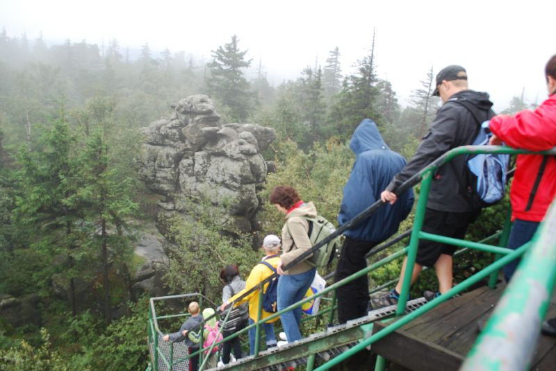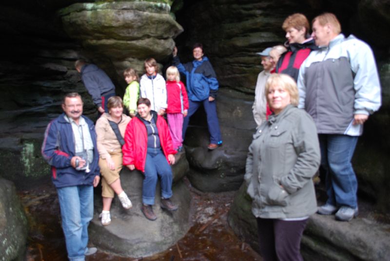 Kolejnym punktem i atrakcją wycieczki było zwiedzanie labiryntu skalnego „Błędne Skały". Spacer po „Błędnych Skałach" był prawdziwą frajdą - wąskie uliczki, przejścia, tunele, ciekawe formy skalne oraz miejsca, w których po prostu trzeba się przeciskać. Specjaliści od spraw paranormalnych twierdzą, że ten unikatowy skalny labirynt to podobno ... miejsce mocy. Można tu doznać oświecenia, można się doenergetyzować.
