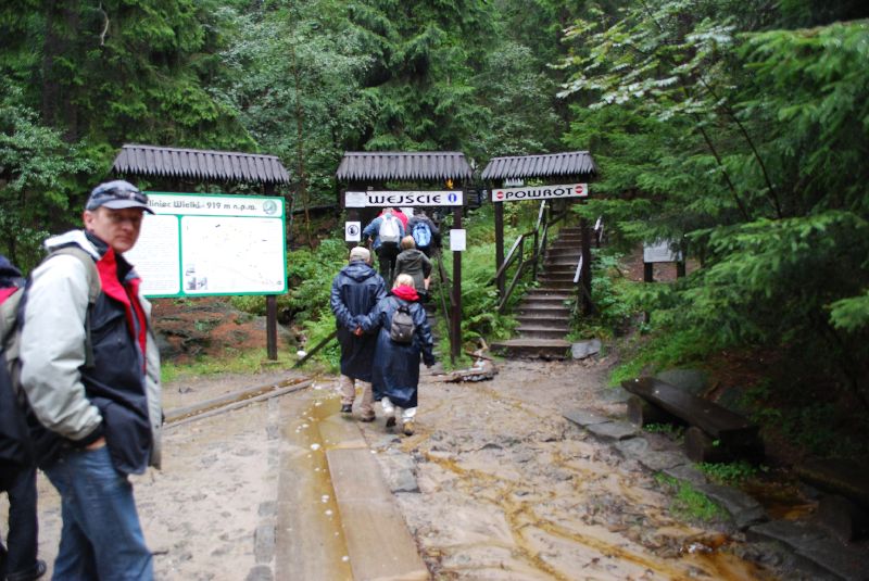 „W Góry Stołowe!"- pierwszy raz słowa te padły w czerwcu na pierwszej wycieczce na „Kolorowe Jeziorka", ponieważ większość uczestników właśnie w górach chciała spędzić ostatni dzień kończących się wakacji. Nie mogliśmy się doczekać i już od dawna planowaliśmy trasę wypadu. Upragniony dzień zbliżał się niemiłosiernie, a wraz z nim wzrastało nasze podniecenie. Zaczęliśmy odliczać dni, aż w końcu nadszedł upragniony przez wszystkich dzień wyjazdu. Godzina siódma - pobudka. Pada deszcz. Telefony urywają się, jedziemy -nie jedziemy. Podjęliśmy decyzję - jedziemy! Odpowiednio wyekwipowani wyruszamy, kierując się zasadą, że nie ma złej pogody, są tylko źle ubrani ludzie.