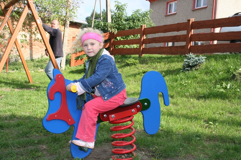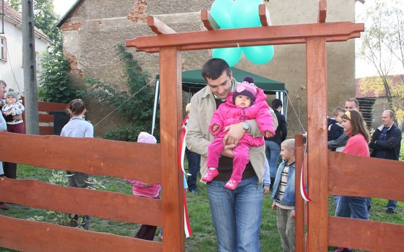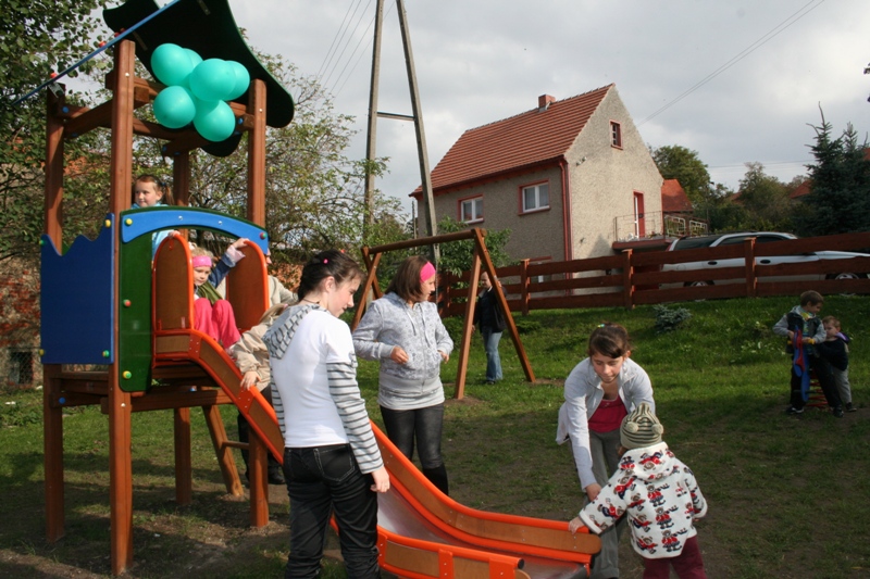 Plac zabaw został ogrodzony. Ustawiono na nim piaskownicę, zjeżdżalnię, huśtawkę, tzw. koniki (pojedynczy i dwa podwójne) oraz ławki. Wokół niego posadzono ozdobne drzewka. Poniżej placu wykonano boisko do siatkówki. Teren w centrum wsi stał się atrakcyjny, ładnie się prezentuje i jest zadbany. Najbardziej ze wszystkiego zadowolone są dzieci, które teraz mają gdzie się bawić i aktywnie spędzić czas.