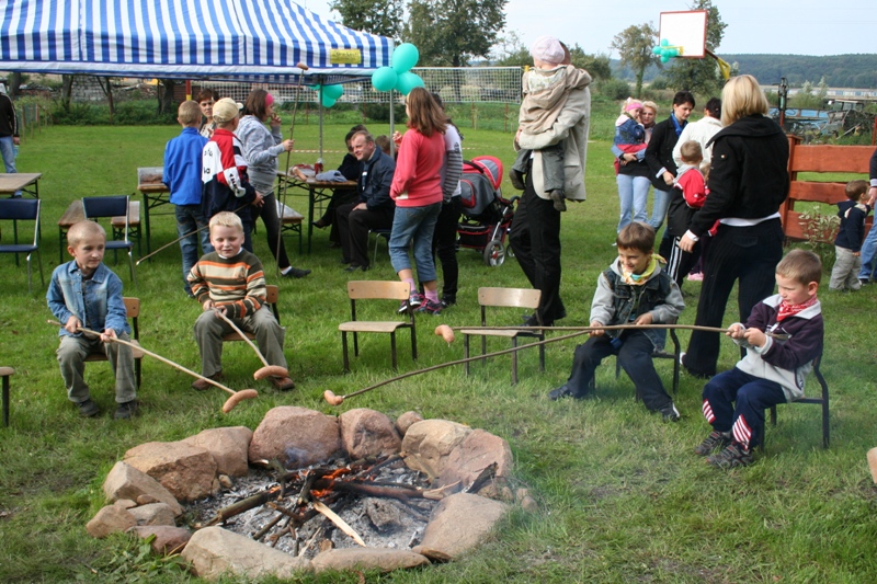 Uroczystego przecięcia wstęgi dokonali Katarzyna Popardowska (w imieniu dzieci i rodziców) oraz Jarosław Oksiński (pracownik Urzędu Gminy). Tuż po tym z wielkim hukiem wystrzeliły w niebo fajerwerki. Zarówno one, jak i plac zabaw, sprawiły dzieciom wiele radości. Wielu chętnych znalazło się nie tylko do huśtania i zjeżdżania, ale również do pieczenia kiełbasek nad ogniskiem. Wszyscy mogli też wziąć udział w zabawie przy orkiestrze, którą zorganizowano w świetlicy. Na stołach nie zabrakło poczęstunku - ciast, napojów, słodyczy i swojskich wyrobów, o które zadbali organizatorzy.