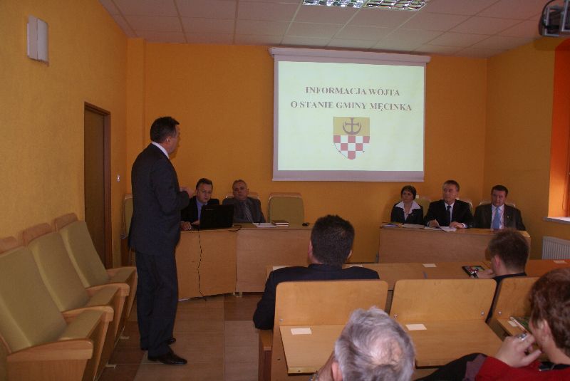 Dnia 1 grudnia 2010r. odbyła się pierwsza sesja Rady Gminy Męcinka kadencji 2010-2014. Otwarcia i stwierdzenia prawomocności obrad dokonał były przewodniczący Stanisław Prędkiewicz. Radni w osobach : Andrzej Ankus, Mirosław Brzozowski, Jolanta Dubińska, Wiesław Gregulski, Janusz Hołyński, Krzysztof Karaban, Wojciech Lichoń, Władysław Micek, Mariola Mikołajczyk, Grzegorz Pisulski, Stanisław Prędkiewicz, Franciszek Rudziec, Małgorzata Stawowczyk, Agnieszka Śmiłowska i Jan Tomaszewski, złożyli ślubowanie.