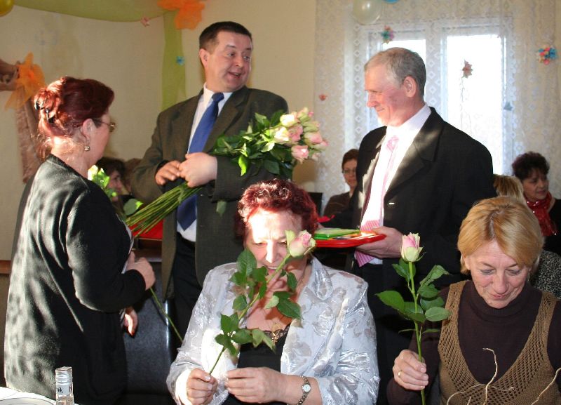 Panowie wręczyli paniom czekolady i tort. Drugi przywiózł ze sobą proboszcz ks. Zbigniew Dyl, z wdzięczności za okazywaną przez gospodynie pomoc. O kobietach z Sichowa pamiętał również miejscowy radny, Mirosław Brzozowski. Od niego wszystkie obecne na spotkaniu otrzymały piękne róże, życzenia i całusy.