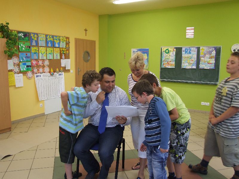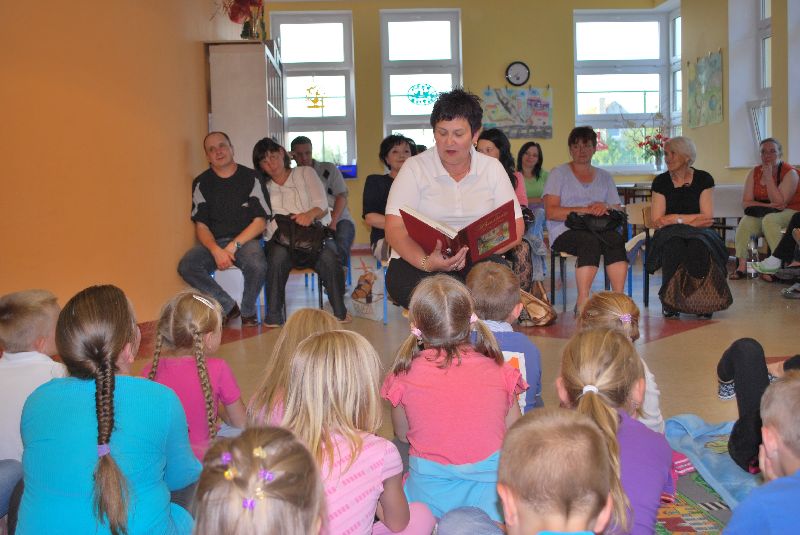 Emilian Bera, z-ca Wójta Gminy Męcinka Andrzej Czech, ksiądz dr Marek Kluwak, tylko po to, by tym dzieciom poczytać.