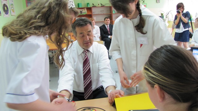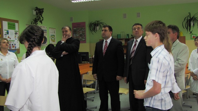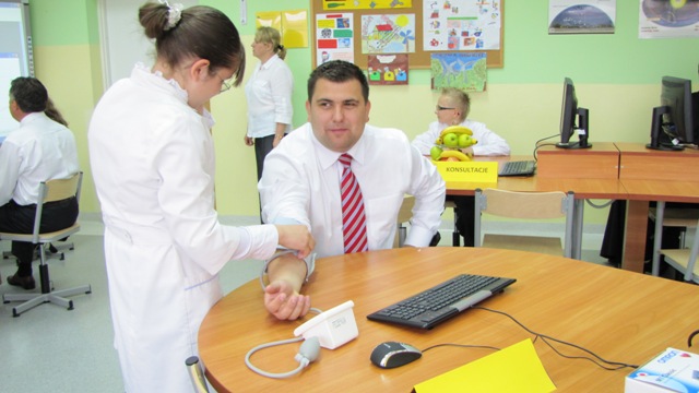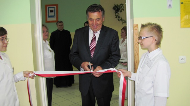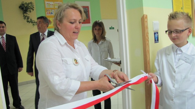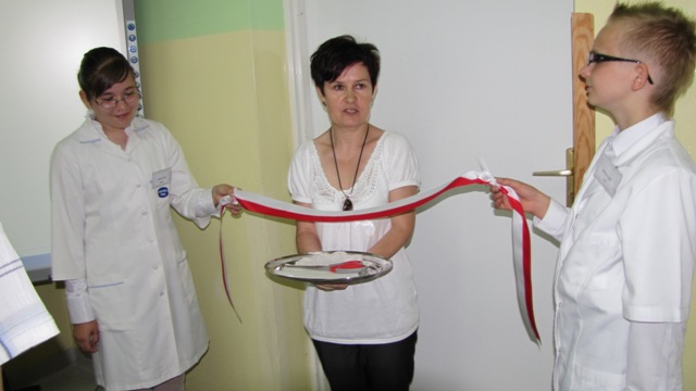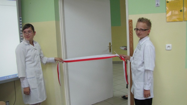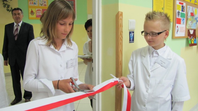 Dodatkowo tego dnia miało miejsce otwarcie pracowni przyrodniczej, którą szkoła pozyskała z funduszy unijnych w ramach projektu „Pracownia przyrodnicza w każdej gminie". Przecięcia wstęgi dokonali dyrektor Zofia Głowiak, koordynator projektu Iwona Pawelec, wójt Zbiegniew Przychodzeń i przedstawiciel uczniów - Marlena Pelc. Po otwarciu odbyły się zajęcia pokazowe, które przeprowadziła wraz z uczniami klasy 6 pani Halina Brejan. Do przeprowadzenia zajęć wykorzystano zasoby pracowni: interfejsy (urządzenia pomiarowe), ciśnieniomierze oraz komputery i tablicę interaktywną. Zaproszenie goście poddali się badaniu ciśnienia krwi i badaniom EKG serca. Konsultanci, w których wcieli się uczniowie, zalecili badanym prowadzenie zdrowego trybu życia i codzienne porcje witamin.