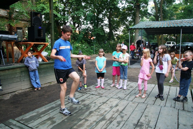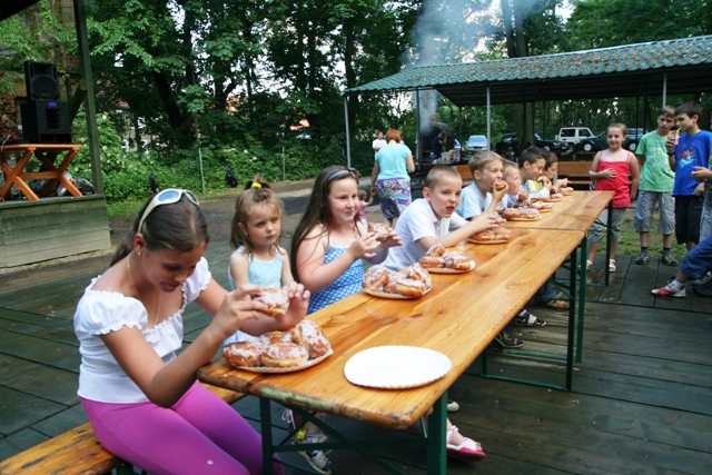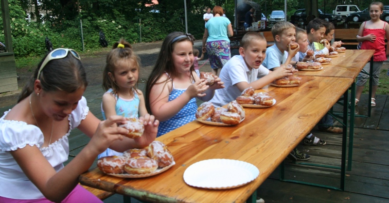 Dzieci wzięły udział w różnych konkurencjach. W jedzeniu pączków na czas zwyciężył Dawid Urbanowski, druga była Paulina Torończak, a trzeci Szymon Biskup. Najlepsza w kręceniu hula-hopem okazała się Ola Gołębiowska, na drugim miejscu znalazła się Emilka Biskup, a na trzecim Ola Olszewska. W rzucie piłką do celu najwięcej punktów uzyskały Oliwia i Roksana Jaworskie. W skokach na skakance w młodszej grupie bezkonkurencyjne były Klaudia Kerger, Ula Fornalska i Julia Kałużna, zaś wśród gimnazjalistek zwyciężyła Malwina Walaszek. Z kolei w konkursie wiedzy o gminie Męcinka najwięcej punktów uzyskał Krystian Bobowski, drugi był Dawid Wojda, a trzecia Agata Staniszewska. Wszystkie dzieci mogły też poszaleć skacząc na dmuchanej żyrafie.