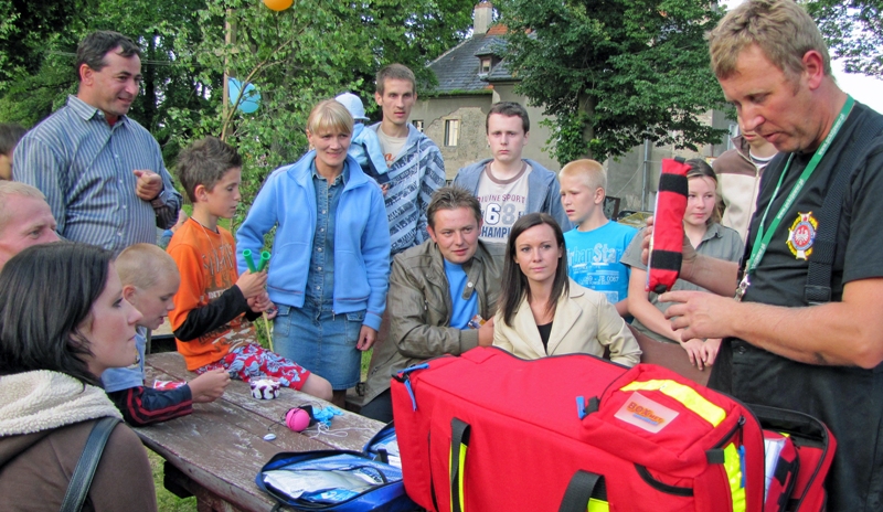 Festyn uświetniła Ochotnicza Straż Pożarna z Pomocnego, która dała pokaz gaszenia ognia. Druhowie zaprezentowali także specjalistyczną torbę ratowniczą i szyny. Dzieci nie tylko podziwiały wielki wóz bojowy, ale też domagały się wejścia do środka.