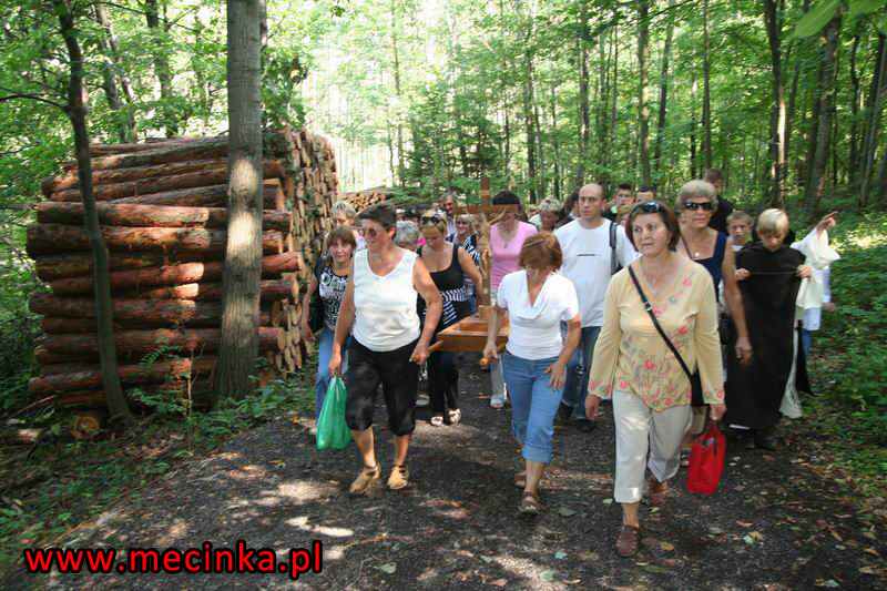 Na zaproszenie proboszcza parafii Męcinka, ks. Marka Kluwaka odpowiedziało wielu. O godz. 13 procesja wyruszyła spod kościoła parafialnego. Mieszkańcy czekali przed swoimi domami i dołączali do pątników. Rytm marszu wyznaczała orkiestra dęta. Od czasu do czasu pielgrzymka zatrzymywała się. Następowała wtedy zmiana przy niesieniu Krzyża Zwycięstwa, który ponieśli strażacy, młodzież, dzieci i ludzie starsi. Oprócz papieskiego krucyfiksu każdy niósł swój krzyż duchowy. Jedni prośby, inni dziękczynienia i pokutę w myśl rozważań, które przygotowała młodzież z paniami katechetkami.