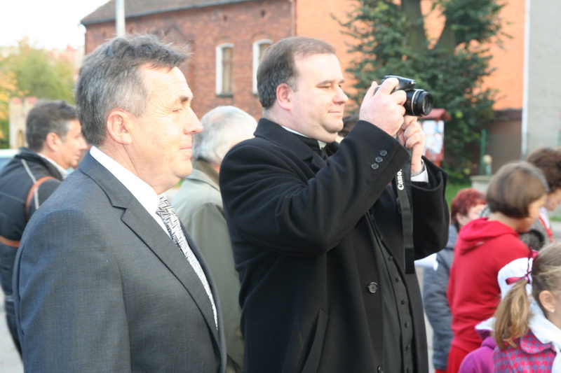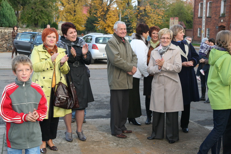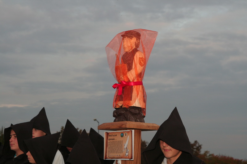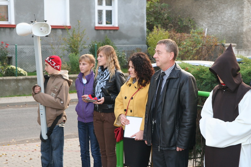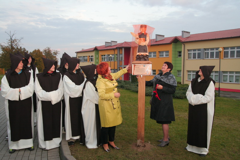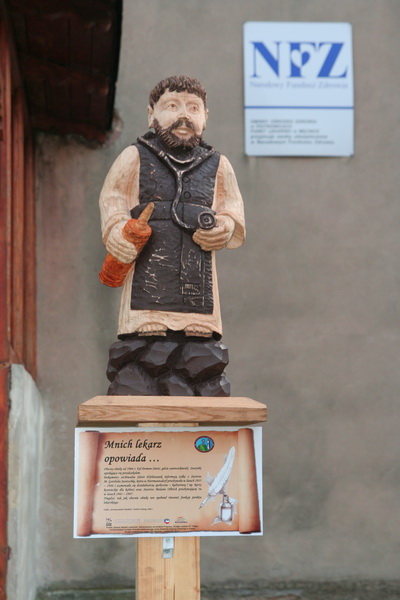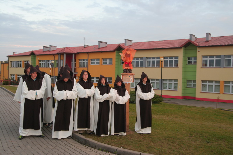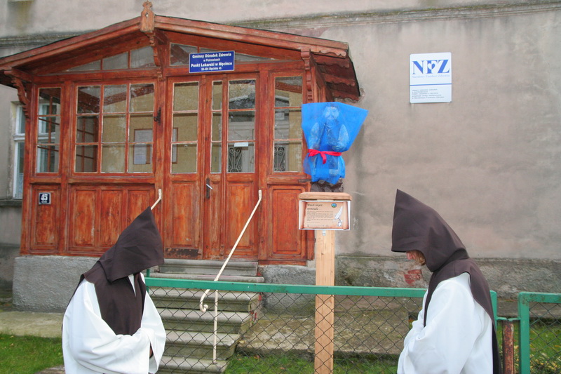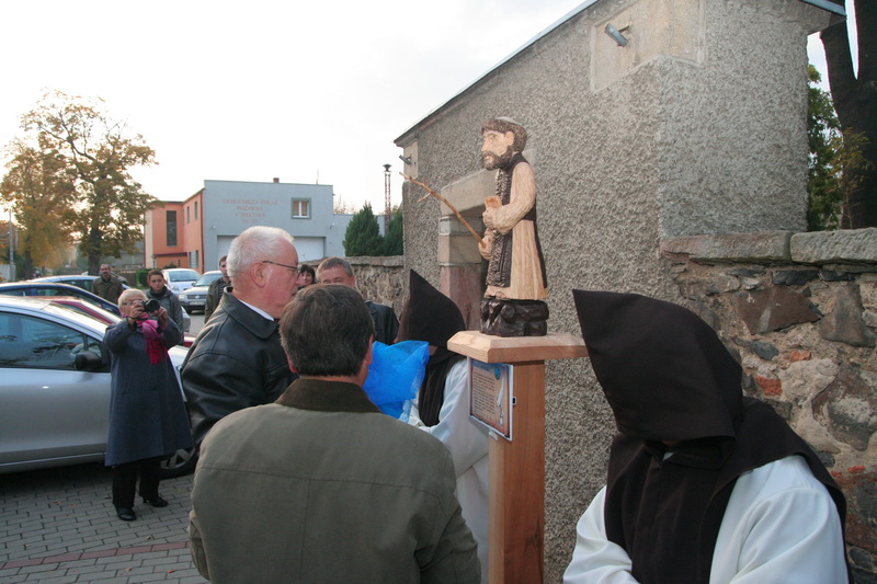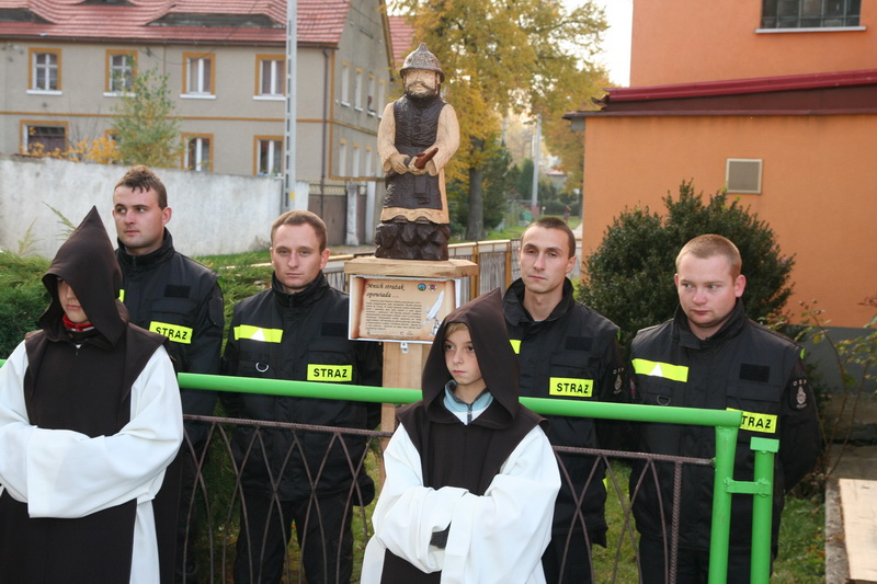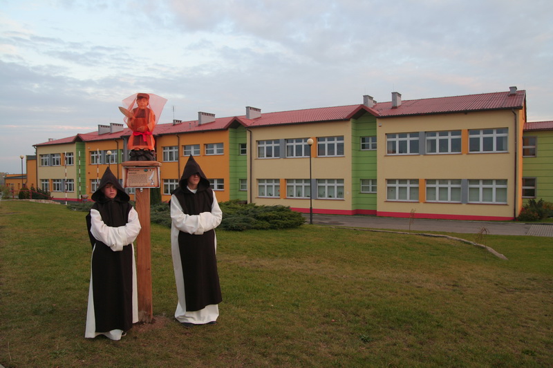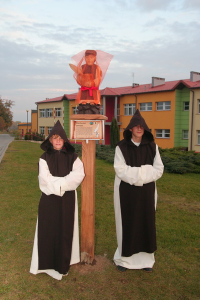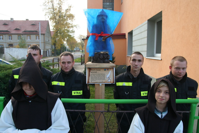 Uroczystego odsłonięcia rzeźb dokonali : mnicha strażaka - Wiesław Gregulski prezes i Huber Babiarz naczelnik wraz z druhami OSP, mnicha lekarza - Jadwiga Woźny kierownik GOZ oraz Mariola Milewicz pielęgniarka, mnicha kościelnego - Franciszek Jakubus i Andrzej Szember przedstawiciele rady parafialnej, mnicha urzędnika - Zbigniew Przychodzeń wójt i Irena Łyszczyk pracownica Urzędu Gminy Męcinka, mnicha sportowca - Robert Niemiec i Kacper Baran przedstawiciele Klubu Sportowego Męcinka, mnicha ucznia - Zofia Głowiak dyrektor Zespołu Szkół w Męcince wraz z wicedyrektor Wiolettą Kudłacz. Natomiast uroczystego odsłonięcia tablicy z mapą ukazującą lokalizację mnichów w Męcince dokonali ks. dr Marek Kluwak proboszcz Parafii p.w. św. Andrzeja Apostoła w Męcince, Zbigniew Przychodzeń wójt gminy oraz Stanisław Prędkiewicz radny. „Bardzo wielu mieszkańców Męcinki społecznie zaangażowało się w realizację tego pomysłu. Osoby te okazały ogromną życzliwość" - mówi Wiesław Gregulski. Szczególne podziękowania należą się wójtowi gminy oraz jego pracownikom za pomoc w pozyskaniu dotacji na realizację projektu, strażakom: Hubertowi Babiarzowi, Krzysztofowi Skorupskiemu, Wiesławowi Skorupskiemu, Sylwestrowi Grabowskiemu, Wiktorowi Łubie, Krzysztofowi Kowalskiemu, Marcinowi Marcowi, Dawidowi Skorupskiemu oraz Stanisławowi Prędkiewiczowi i Sławomirowi Szemberowi za pomoc w przygotowaniu terenu. Dziękuję paniom, które przygotowały poczęstunek: Irenie Łyszczyk, Wiesławie Kuśnierz, Ewie Gregulskiej, Dorocie Babiarz, Marii Lewickiej, Agnieszce Gregulskiej oraz Arlecie Oksińskiej, a także Iwonie Torończak i Klaudii Pelc za pomoc w prowadzeniu uroczystości.