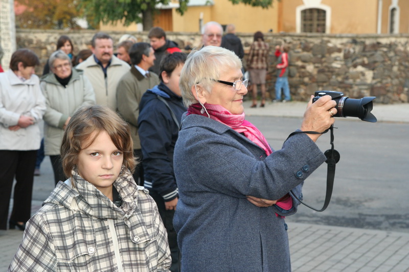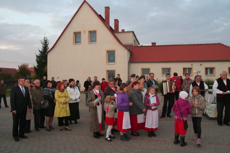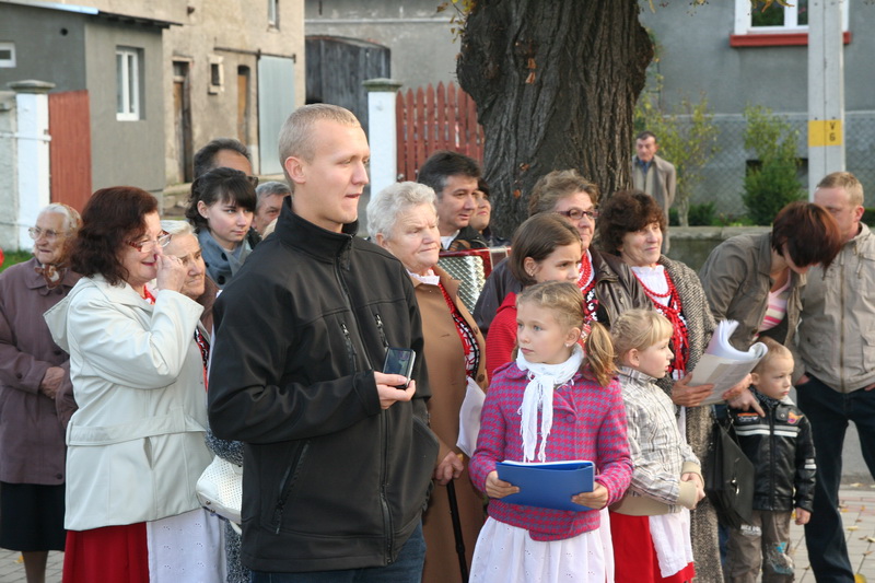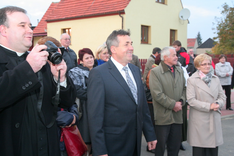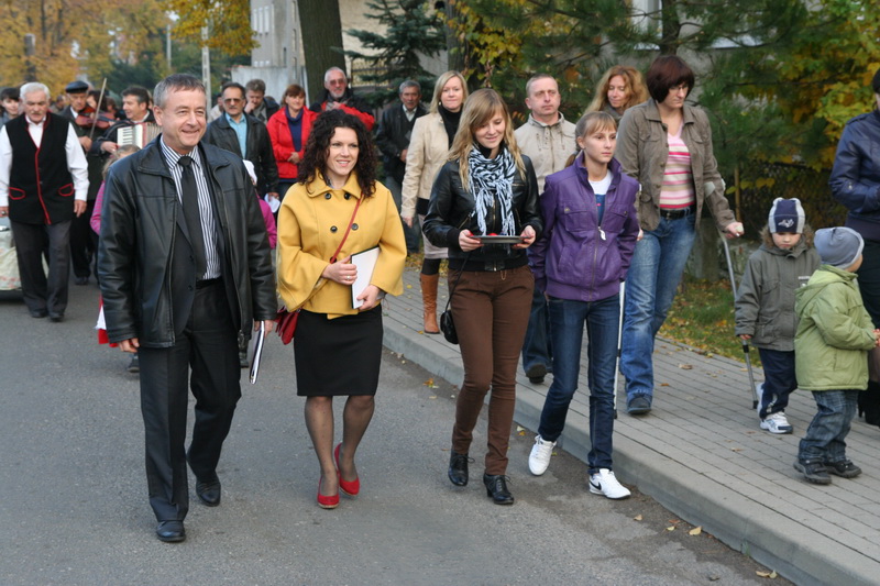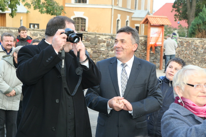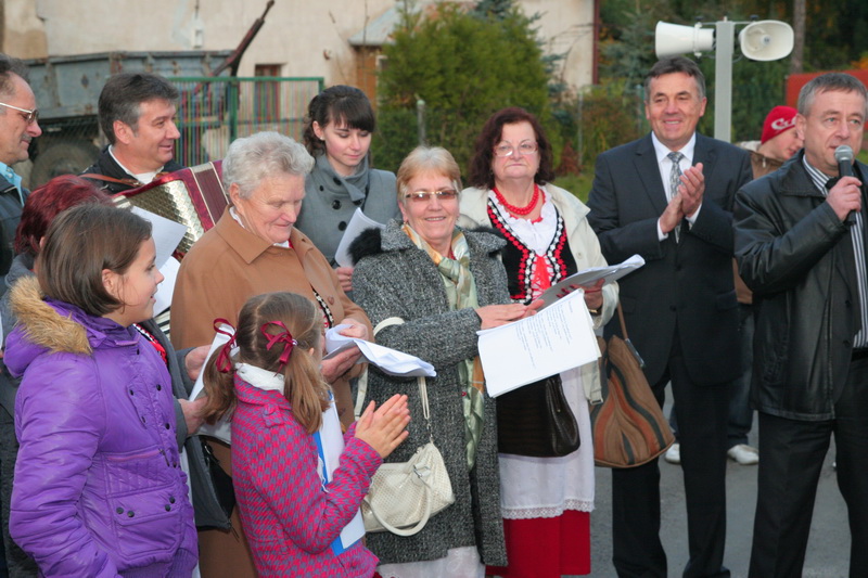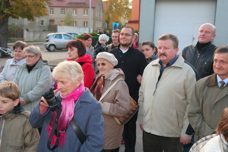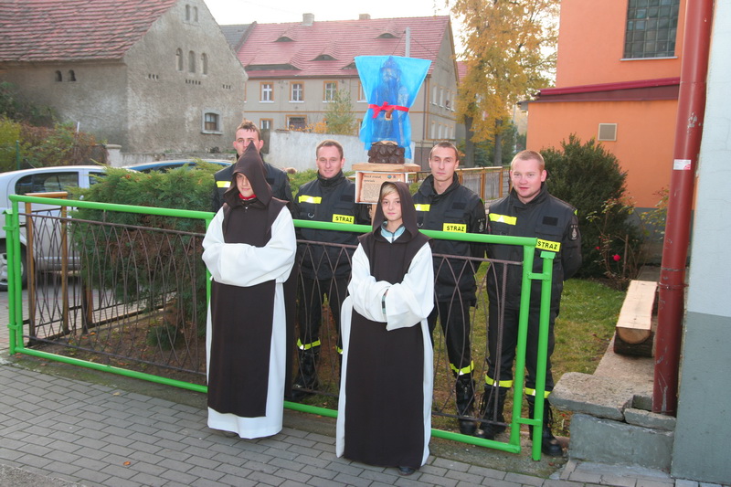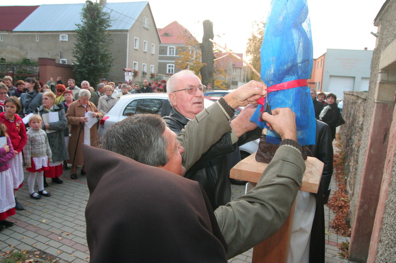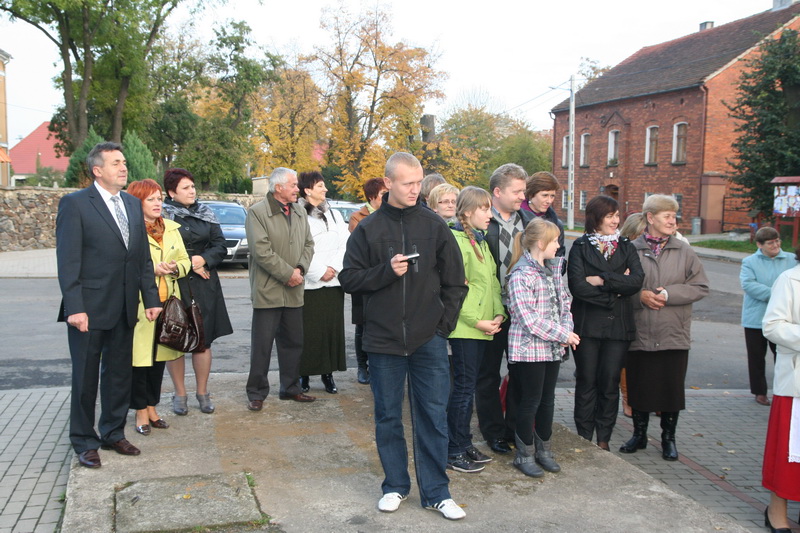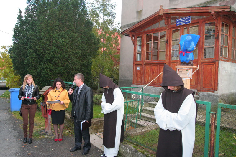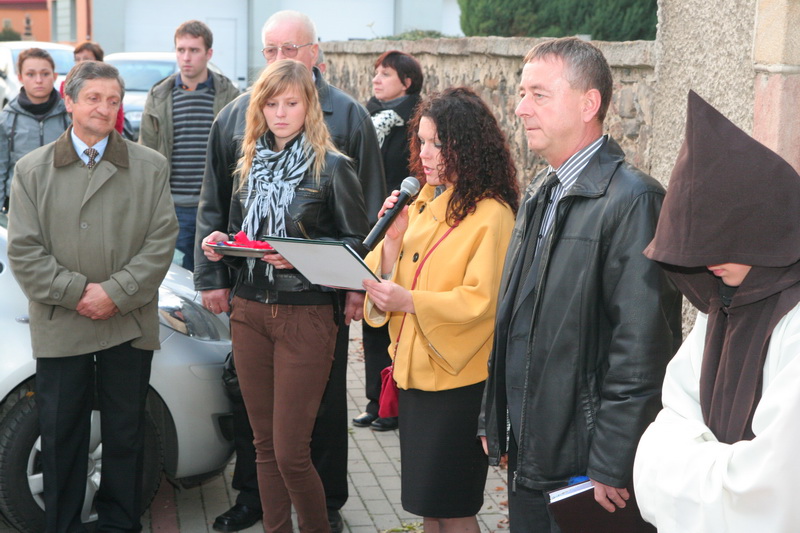 Uroczystego odsłonięcia rzeźb dokonali : mnicha strażaka - Wiesław Gregulski prezes i Huber Babiarz naczelnik wraz z druhami OSP, mnicha lekarza - Jadwiga Woźny kierownik GOZ oraz Mariola Milewicz pielęgniarka, mnicha kościelnego - Franciszek Jakubus i Andrzej Szember przedstawiciele rady parafialnej, mnicha urzędnika - Zbigniew Przychodzeń wójt i Irena Łyszczyk pracownica Urzędu Gminy Męcinka, mnicha sportowca - Robert Niemiec i Kacper Baran przedstawiciele Klubu Sportowego Męcinka, mnicha ucznia - Zofia Głowiak dyrektor Zespołu Szkół w Męcince wraz z wicedyrektor Wiolettą Kudłacz. Natomiast uroczystego odsłonięcia tablicy z mapą ukazującą lokalizację mnichów w Męcince dokonali ks. dr Marek Kluwak proboszcz Parafii p.w. św. Andrzeja Apostoła w Męcince, Zbigniew Przychodzeń wójt gminy oraz Stanisław Prędkiewicz radny. „Bardzo wielu mieszkańców Męcinki społecznie zaangażowało się w realizację tego pomysłu. Osoby te okazały ogromną życzliwość" - mówi Wiesław Gregulski. Szczególne podziękowania należą się wójtowi gminy oraz jego pracownikom za pomoc w pozyskaniu dotacji na realizację projektu, strażakom: Hubertowi Babiarzowi, Krzysztofowi Skorupskiemu, Wiesławowi Skorupskiemu, Sylwestrowi Grabowskiemu, Wiktorowi Łubie, Krzysztofowi Kowalskiemu, Marcinowi Marcowi, Dawidowi Skorupskiemu oraz Stanisławowi Prędkiewiczowi i Sławomirowi Szemberowi za pomoc w przygotowaniu terenu. Dziękuję paniom, które przygotowały poczęstunek: Irenie Łyszczyk, Wiesławie Kuśnierz, Ewie Gregulskiej, Dorocie Babiarz, Marii Lewickiej, Agnieszce Gregulskiej oraz Arlecie Oksińskiej, a także Iwonie Torończak i Klaudii Pelc za pomoc w prowadzeniu uroczystości.