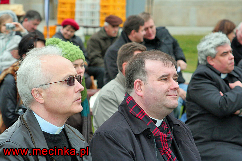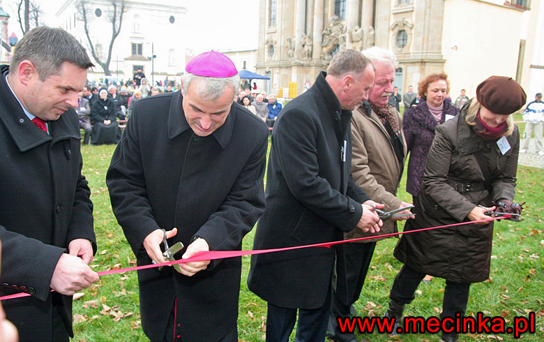 Ks. biskup dr Marek Mendyk, po przecięciu wstęgi nie ukrywał zadowolenia z przedsięwzięcia. Był czas na gratulacje i dyskusje o przyszłości szlaku na terenie gminy Męcinka.