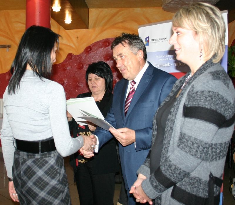 Celem głównym projektu było podniesienie poziomu kompetencji psychospołecznych oraz zdolności do zatrudnienia w/w osób, uzyskanie wiary we własne siły i możliwości, zniesienie barier psychologicznych w tym również mentalnych najbliższego otoczenia, które są przyczyną postawy wycofania. Udział w szkoleniach był bezpłatny - finansowany w ramach realizowanego projektu. Skorzystało z niego 7 osób z terenu gminy Męcinka - pięć pań i dwóch panów, w tym jedna osoba niepełnosprawna. Sto procent ukończyło szkolenie. W piątek, 25 listopada wszyscy uczestnicy projektu otrzymali stosowne certyfikaty z rąk kierownik GOPS Katarzyny Roman-Cwynar oraz upominki od przedstawicielki złotoryjskiej firmy Hils Consulting Tomasz Antosiak, która realizowała szkolenie.