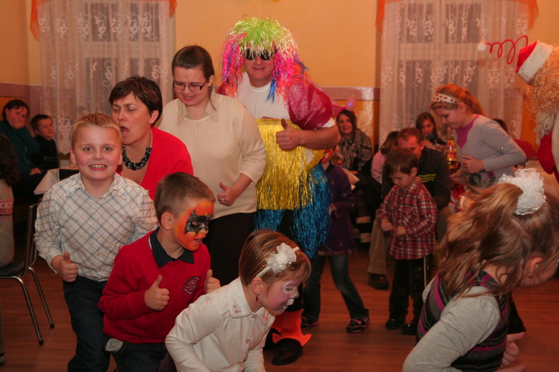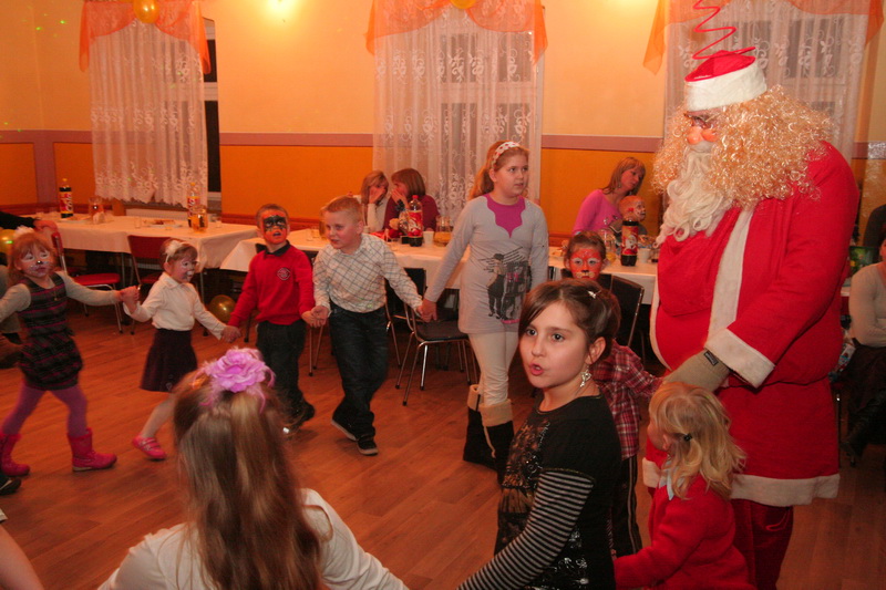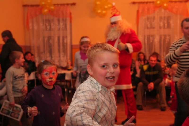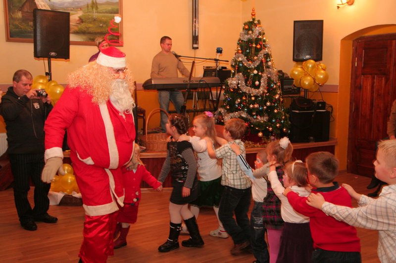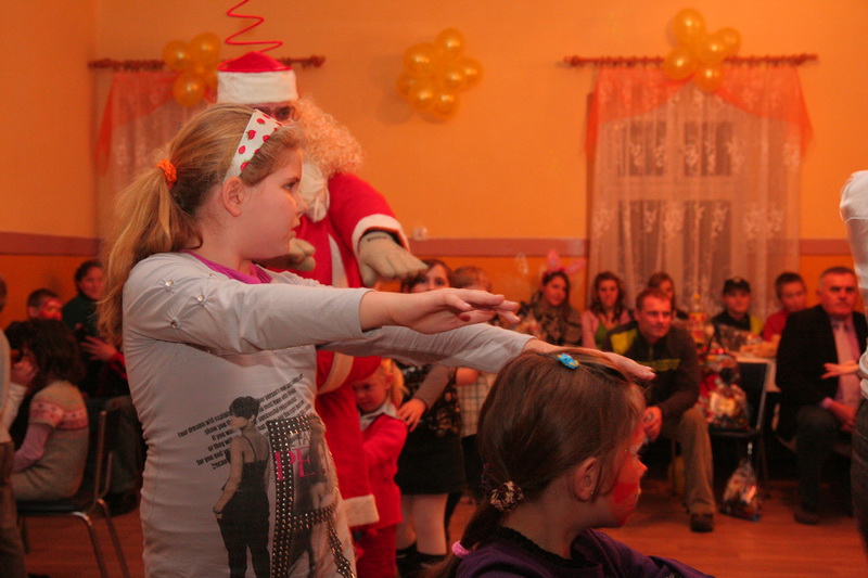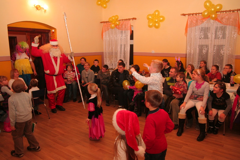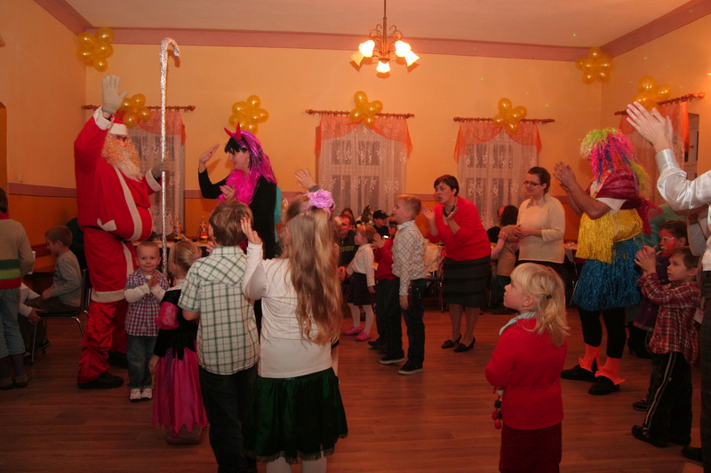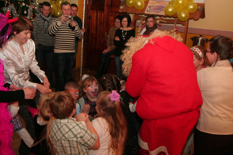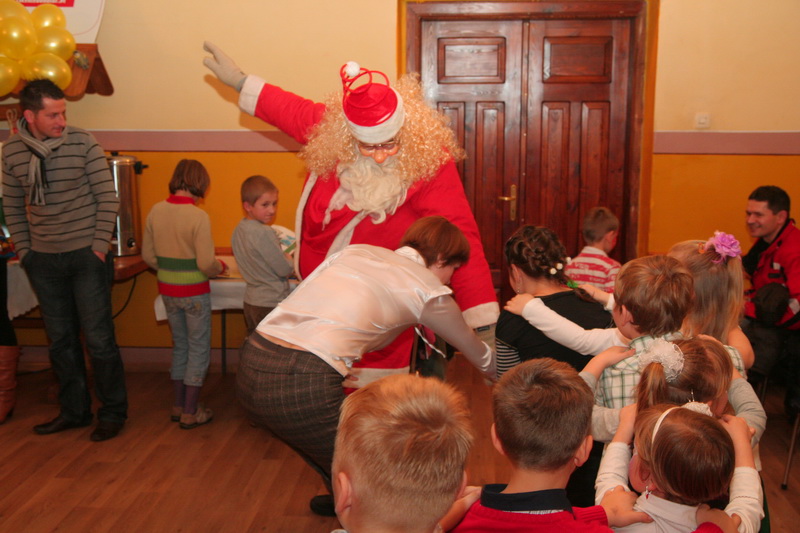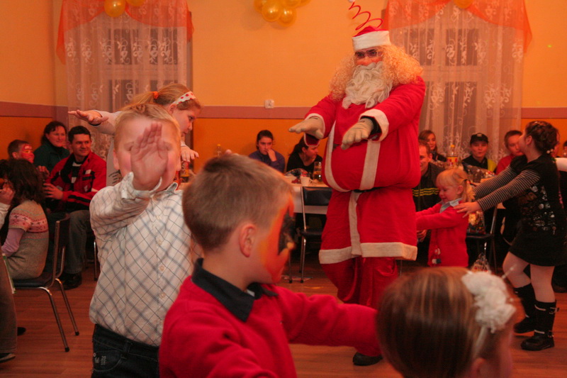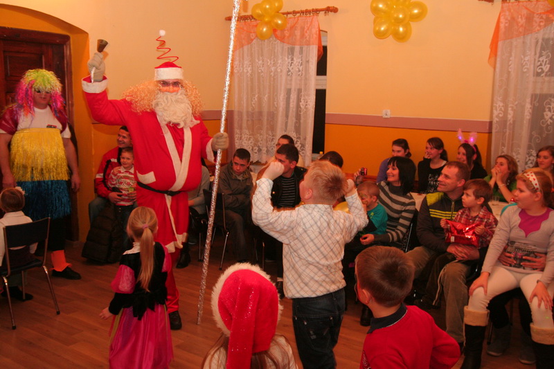 Zanim przybył do świetlicy wiejskiej gość z prezentami, dzieci tańczyły przy muzyce zespołu MASTAR z Sichowa. Organizatorzy przygotowali mnóstwo konkursów z nagrodami. Gdy minęła godz. 17, w sali zjawił się długo oczekiwany św. Mikołaj, który rozdał aż 50 paczek. Dzieci chciały oczywiście popisać się przed Świętym Mikołajem, więc wiele z nich zaśpiewało piosenkę lub powiedziało wierszyk, a kilkoro przyniosło nawet podarek dla Mikołaja. Piętnaścioro najmłodszych, które jeszcze nie chodzą do szkoły, otrzymało również paczki przygotowane przez Gminny Ośrodek Pomocy Społecznej w Męcince.