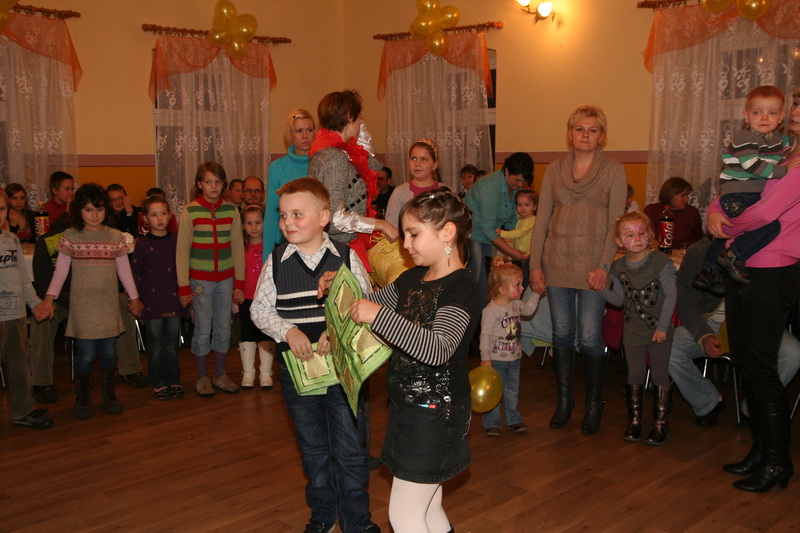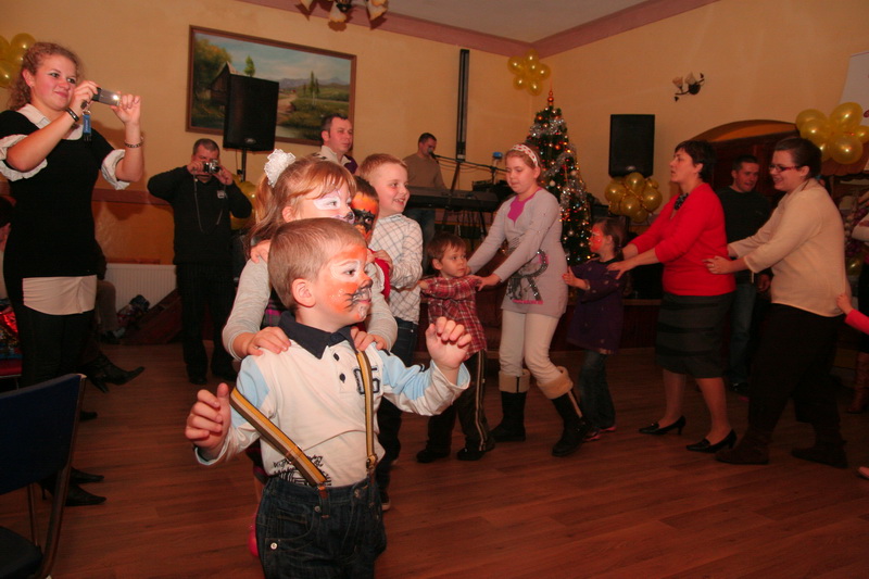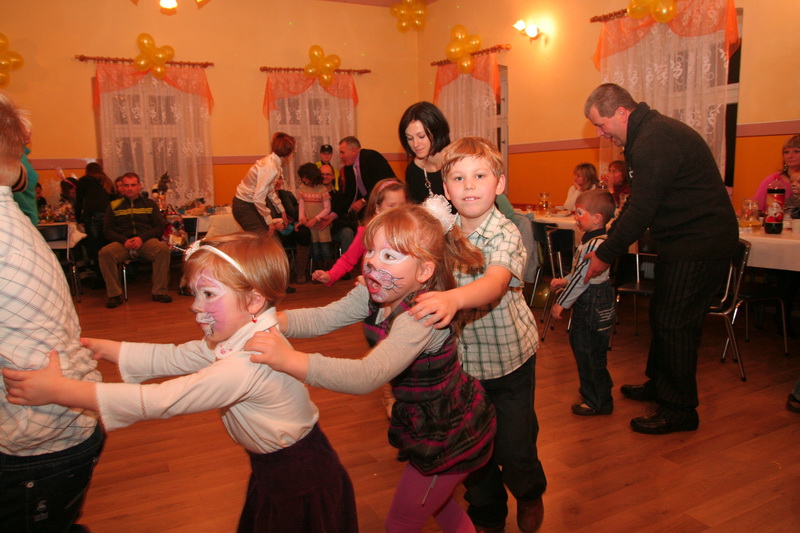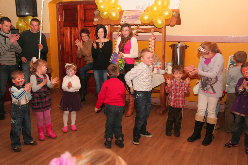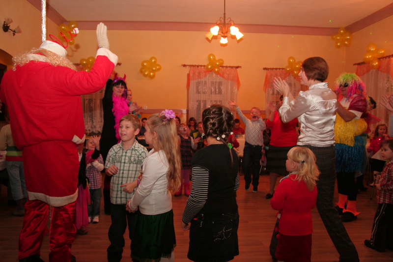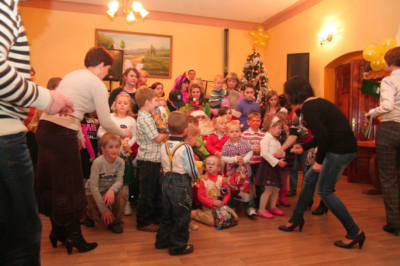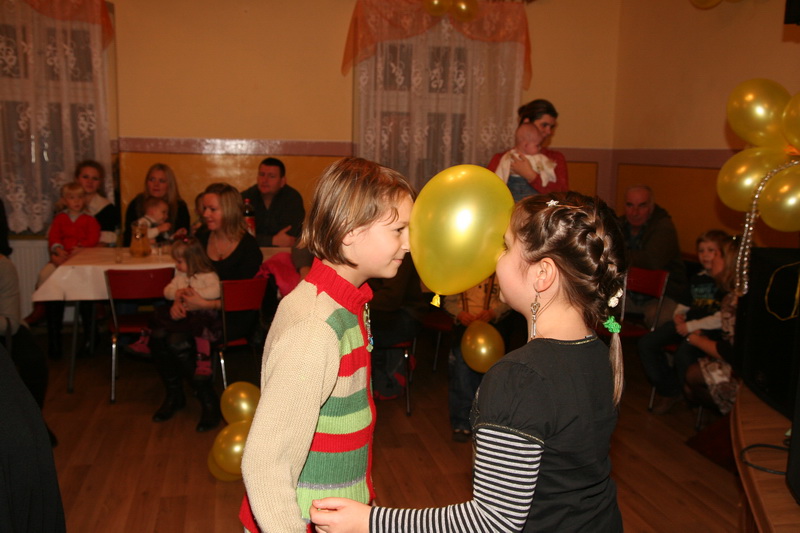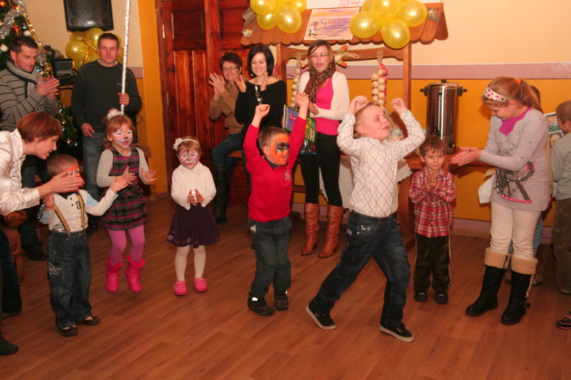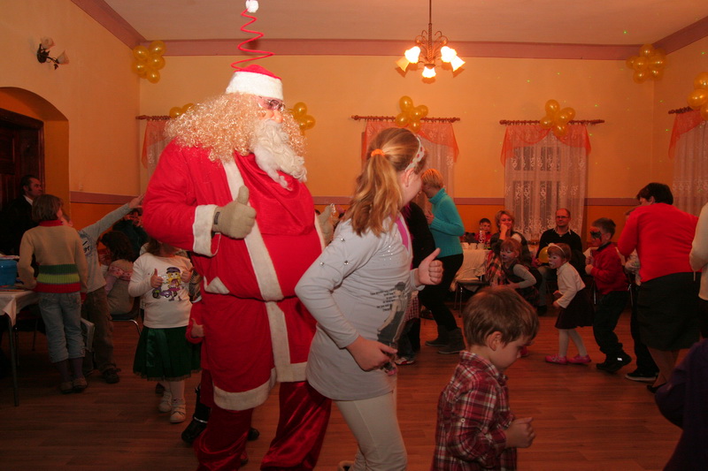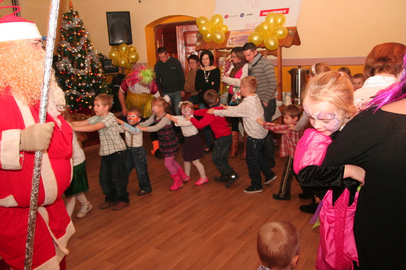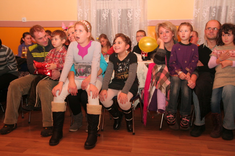 Zanim przybył do świetlicy wiejskiej gość z prezentami, dzieci tańczyły przy muzyce zespołu MASTAR z Sichowa. Organizatorzy przygotowali mnóstwo konkursów z nagrodami. Gdy minęła godz. 17, w sali zjawił się długo oczekiwany św. Mikołaj, który rozdał aż 50 paczek. Dzieci chciały oczywiście popisać się przed Świętym Mikołajem, więc wiele z nich zaśpiewało piosenkę lub powiedziało wierszyk, a kilkoro przyniosło nawet podarek dla Mikołaja. Piętnaścioro najmłodszych, które jeszcze nie chodzą do szkoły, otrzymało również paczki przygotowane przez Gminny Ośrodek Pomocy Społecznej w Męcince.