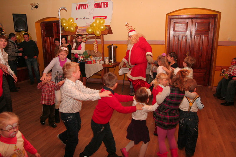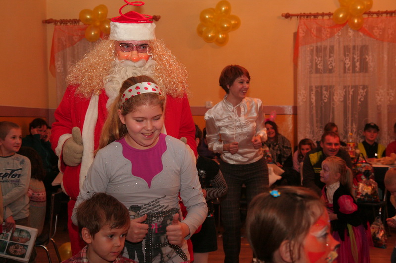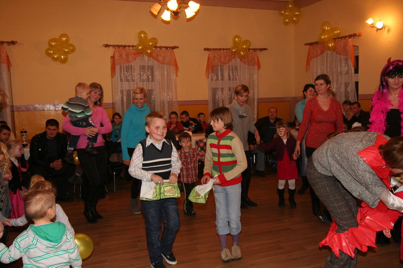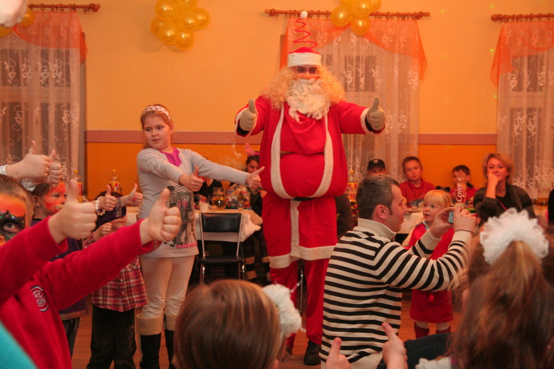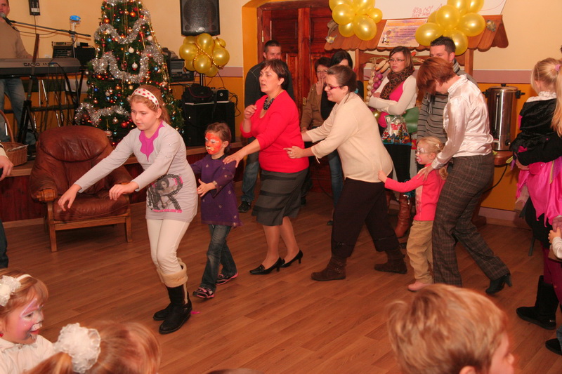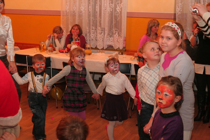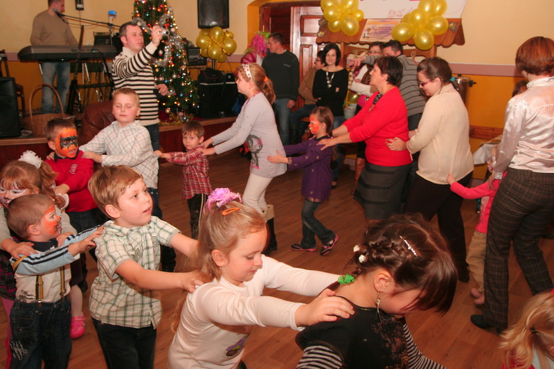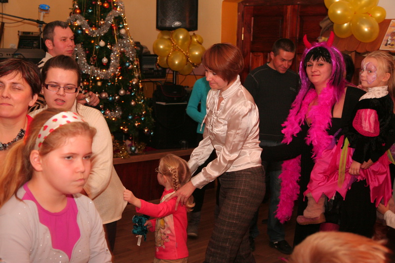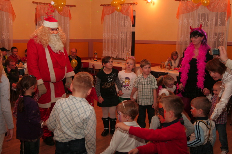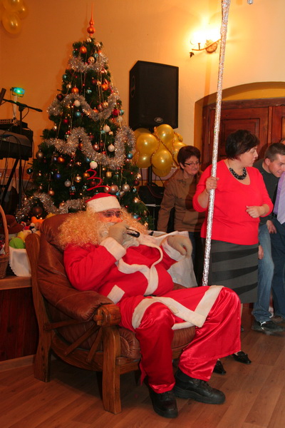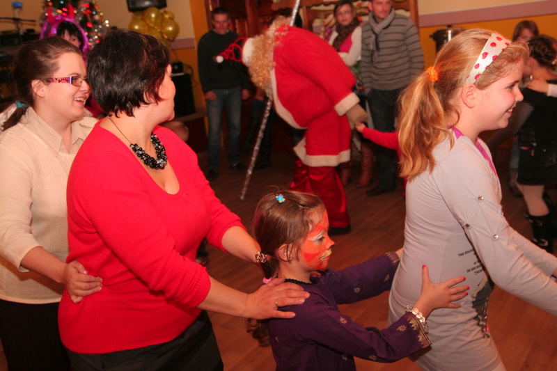 Zanim przybył do świetlicy wiejskiej gość z prezentami, dzieci tańczyły przy muzyce zespołu MASTAR z Sichowa. Organizatorzy przygotowali mnóstwo konkursów z nagrodami. Gdy minęła godz. 17, w sali zjawił się długo oczekiwany św. Mikołaj, który rozdał aż 50 paczek. Dzieci chciały oczywiście popisać się przed Świętym Mikołajem, więc wiele z nich zaśpiewało piosenkę lub powiedziało wierszyk, a kilkoro przyniosło nawet podarek dla Mikołaja. Piętnaścioro najmłodszych, które jeszcze nie chodzą do szkoły, otrzymało również paczki przygotowane przez Gminny Ośrodek Pomocy Społecznej w Męcince.