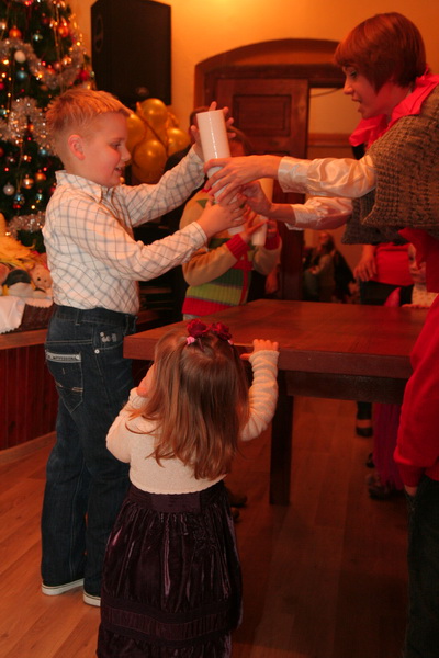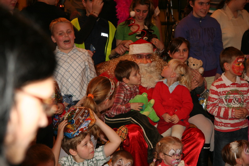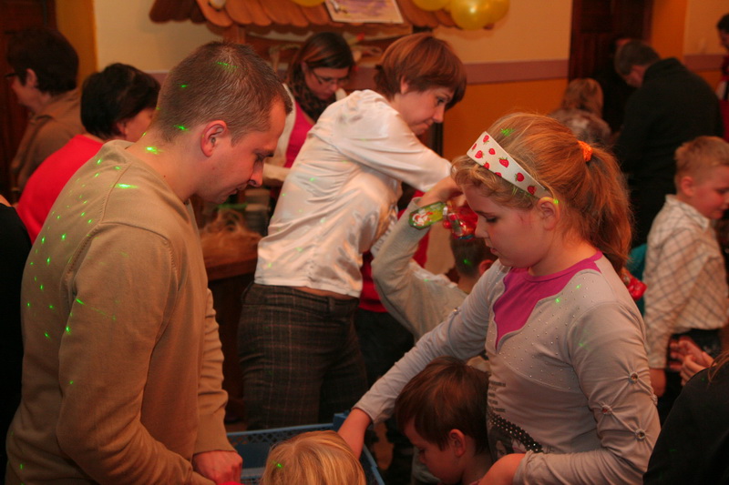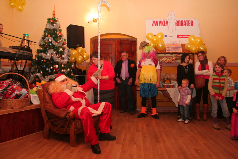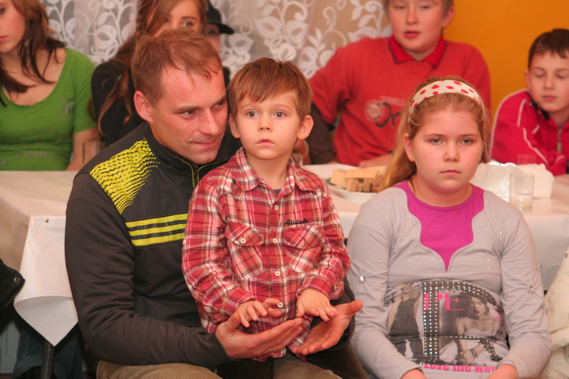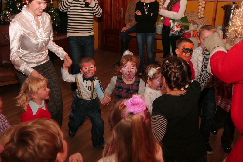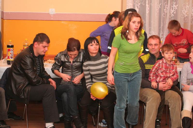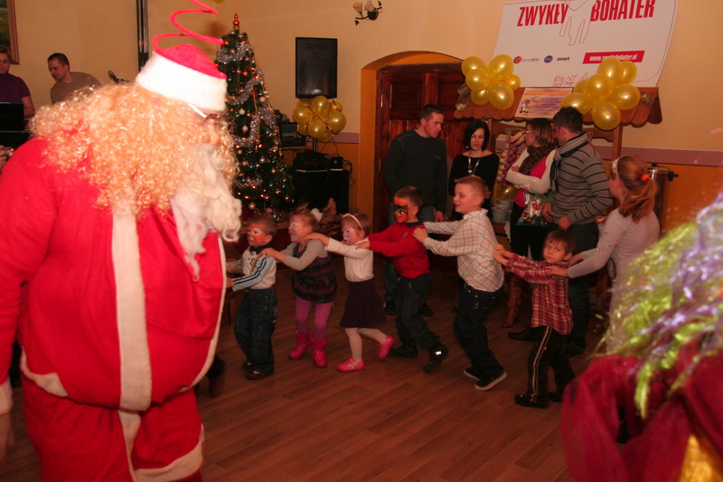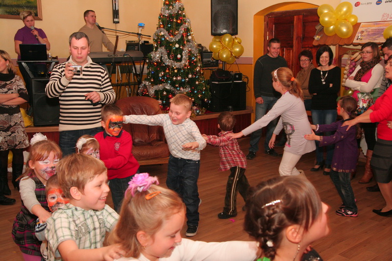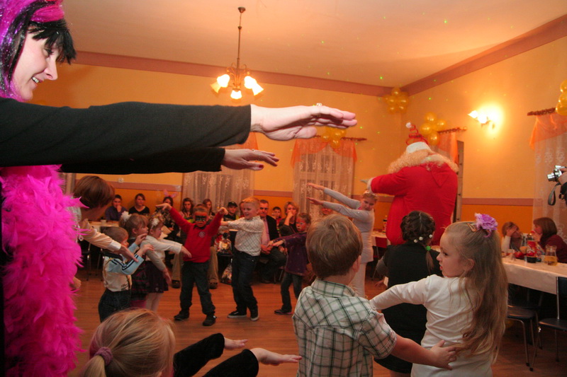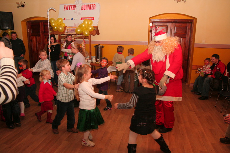 Zanim przybył do świetlicy wiejskiej gość z prezentami, dzieci tańczyły przy muzyce zespołu MASTAR z Sichowa. Organizatorzy przygotowali mnóstwo konkursów z nagrodami. Gdy minęła godz. 17, w sali zjawił się długo oczekiwany św. Mikołaj, który rozdał aż 50 paczek. Dzieci chciały oczywiście popisać się przed Świętym Mikołajem, więc wiele z nich zaśpiewało piosenkę lub powiedziało wierszyk, a kilkoro przyniosło nawet podarek dla Mikołaja. Piętnaścioro najmłodszych, które jeszcze nie chodzą do szkoły, otrzymało również paczki przygotowane przez Gminny Ośrodek Pomocy Społecznej w Męcince.