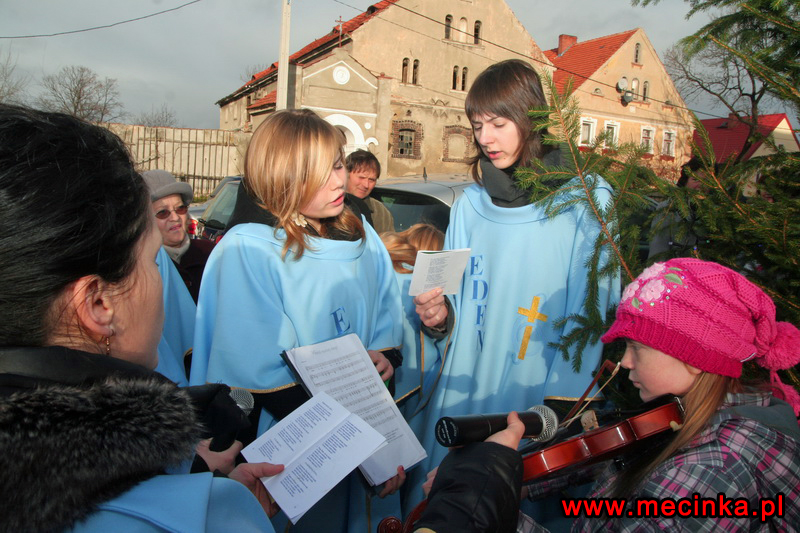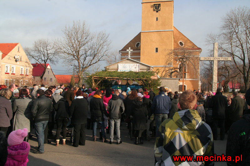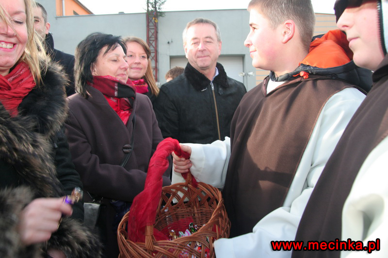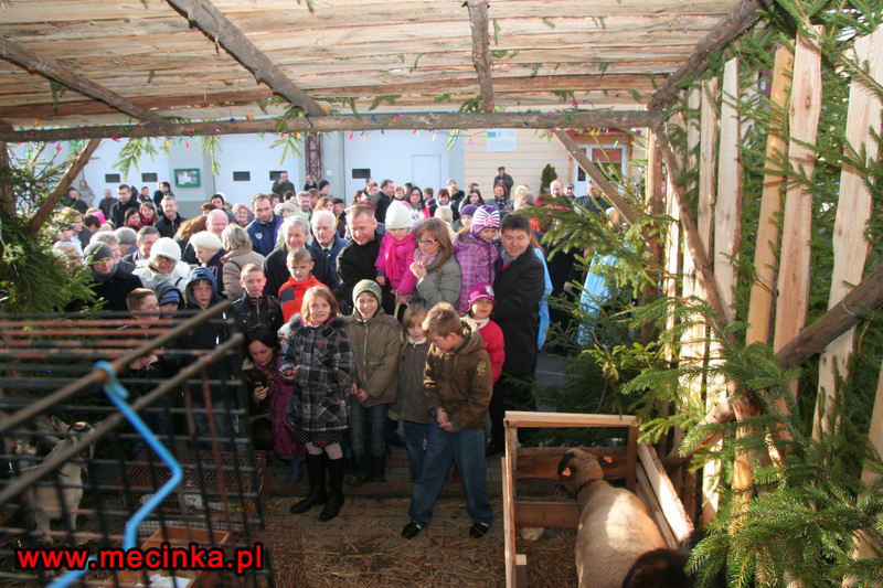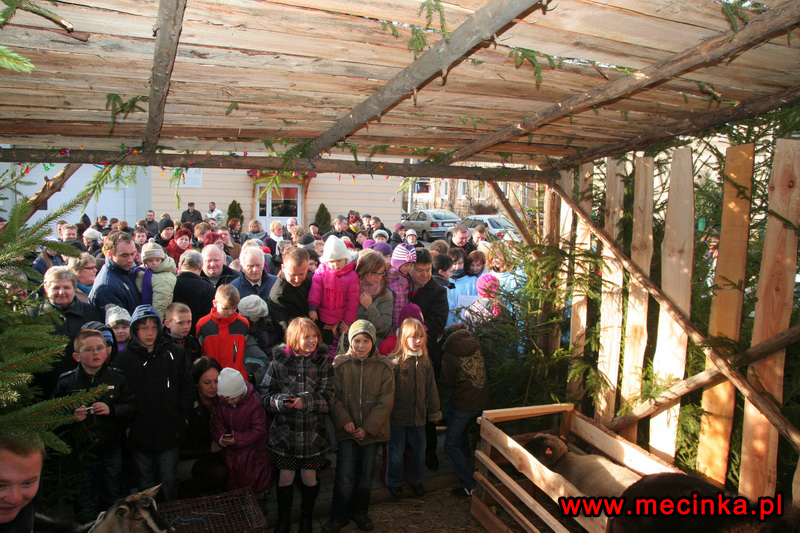 W zagrodach i klatkach znalazły się króliki od p. Wiesława Skorupskiego, cielątko od p. Tadeusza Koźbiała, kucyk od p. Marka Latochy, kotna owieczka, która przyjechała aż z Myślinowa od p. Bożeny Mycek, koza od p. Danuty Janoś, a także gołębie p. Krzysztofa Milewicza i p. Andrzeja Skibińskiego. Zwierzęta sprawiły wielką frajdę dzieciom, które chętnie je głaskały i karmiły. Licznie zebrani parafianie wspólnie ze scholą EDEN śpiewali kolędy. Na skrzypcach pięknie zagrała Martyna Kostrzewa. Nie zabrakło też słodkiej niespodzianki – przebrani za cystersów gimnazjaliści rozdawali cukierki.