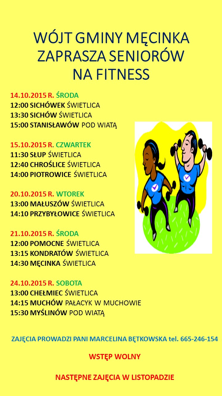 Zajęcia fitness dla Seniorów poniedziałek, 12, październik 2015 13:15 Drukuj fUdostępnij Szczegóły zajęć - powiększ plakat (format JPG)
