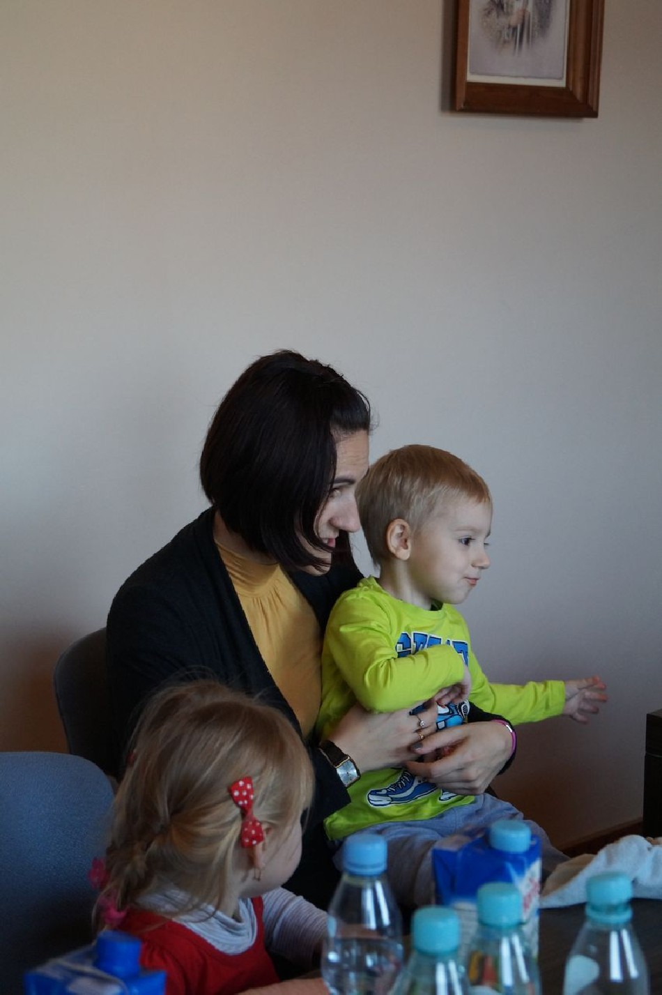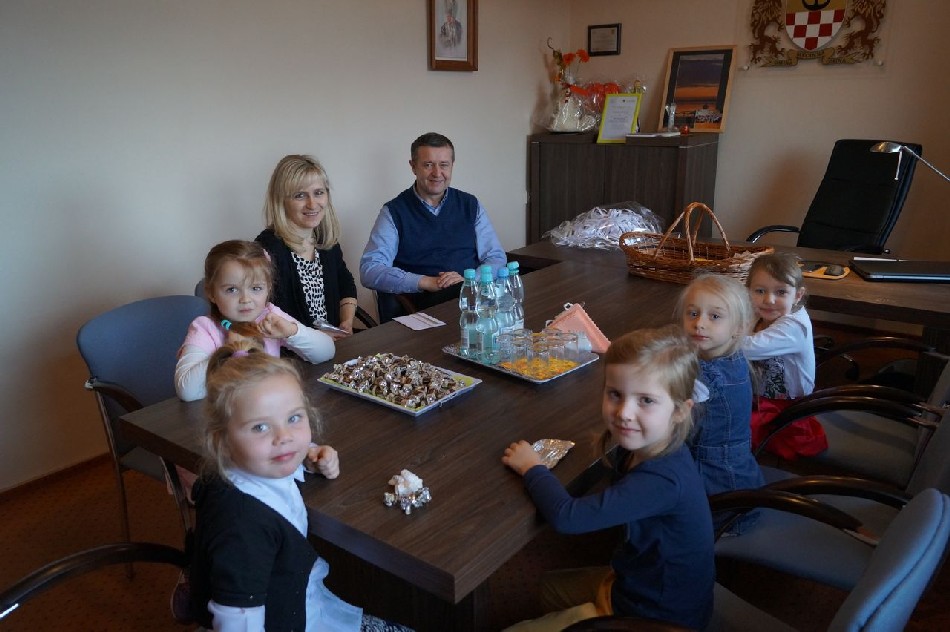 Maluszki zagościły w gabinecie wójta, w którym czuły się bardzo swobodnie. Z chęcią przedstawiały się oraz opowiadały o przedszkolu. Pierwszy raz mamy tak piękną choinkę w naszym urzędzie i z pewnością będzie to kolejna tradycja w Naszej Gminie.