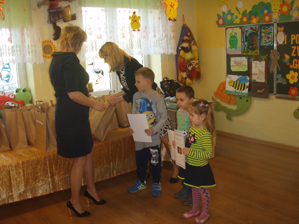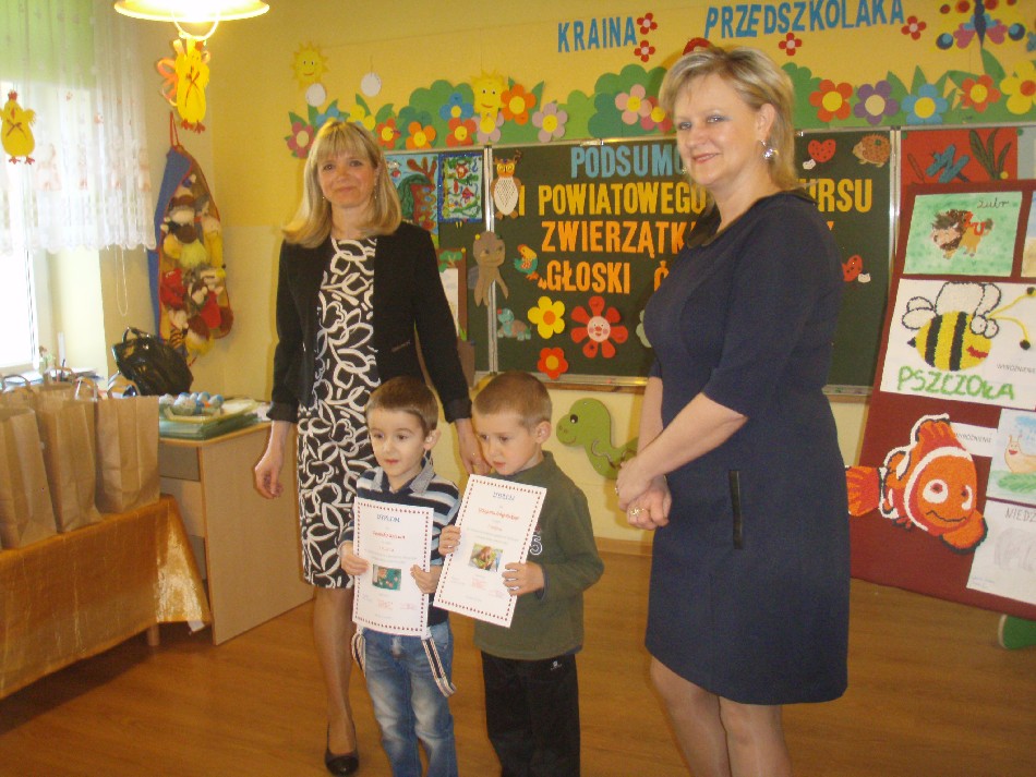 Dnia 21.04.2016r.w Przedszkolu w Męcince odbyło się uroczyste podsumowanie I Powiatowego Konkursu Logopedyczno- Plastycznego „Zwierzątka lubimy, głoski ćwiczymy” oraz wręczenie nagród i dyplomów. Wzięli w nim udział laureaci konkursu z terenu powiatu jaworskiego, opiekunowie i nauczyciele.