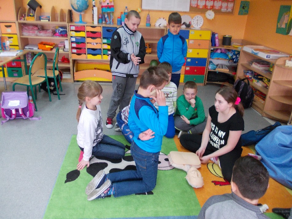 Jak wyrobić u dzieci odruch pomagania innym? Co zrobić, by potrafili nieść pomoc poszkodowanym w najróżniejszych wypadkach i nie bali się widoku krwi? Jednym ze sposobów są szkolenia z udzielania pierwszej pomocy. I dlatego grupa młodych ratowników z Męcinki – laureaci wielu konkursów - przeprowadziła cykl zajęć praktycznych w zakresie nauki udzielania pierwszej pomocy przedmedycznej dla kolegów i koleżanek z klas I-III.