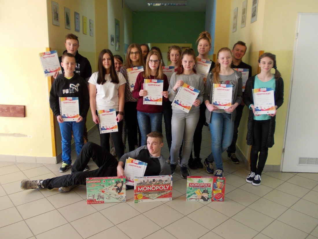 W piątek uczniowie Zespołu Szkół w Męcince podsumowali swoje działania w projekcie edukacyjnym „Na własne konto”. Zostały wręczone nagrody najaktywniejszym uczniom. Otrzymali je: Marcin Przedwojewski, Klaudia Malina, Ernest Rudziec. Wszyscy uczniowie otrzymali CERTYFIKATY uczestnictwa w projekcie.