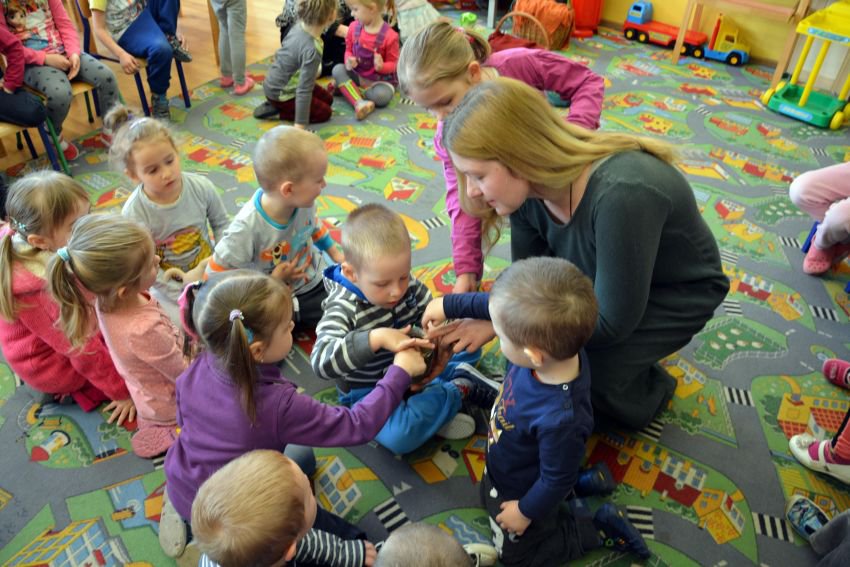 Dzieci dowiedziały się, jakie skarby i dobrodziejstwa daje nam nasza planeta Ziemia oraz jak należy o nią dbać. Ciekawą atrakcję była zabawa " Zgadnij, co to za skarb". Na zakończenie pani Diana rozdała wszystkim dzieciom słodkości, a tym najbardziej aktywnym książeczki. Następnie przedszkolaki posadziły kwiatki w ogrodzie przedszkolnym.