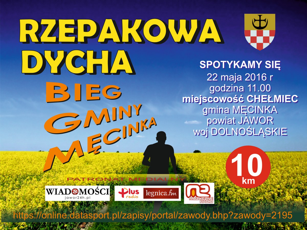 Aż 85 biegaczy zapisało się na Bieg terenowy Rzepakowa Dycha, który odbędzie się 22 maja na terenie sołectwa Chełmiec w Gminie Męcinka. Przypominamy, że zapisy elektroniczne trwają do 16 maja do godz. 12:00 pod adresem internetowym http://online.datasport.pl/zapisy/portal/zawody.php?zawody=2195.