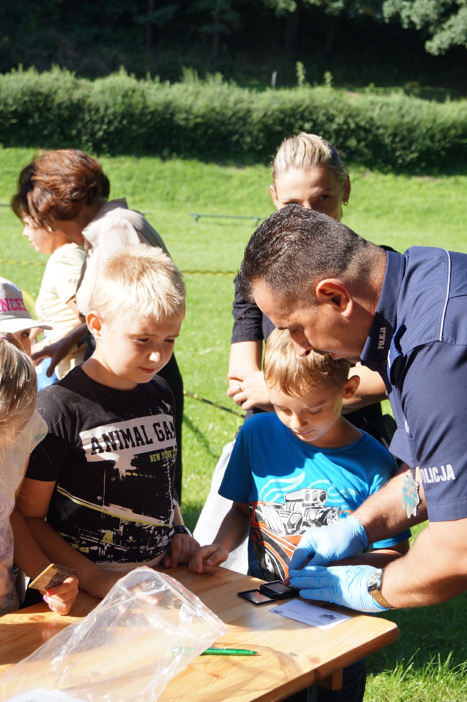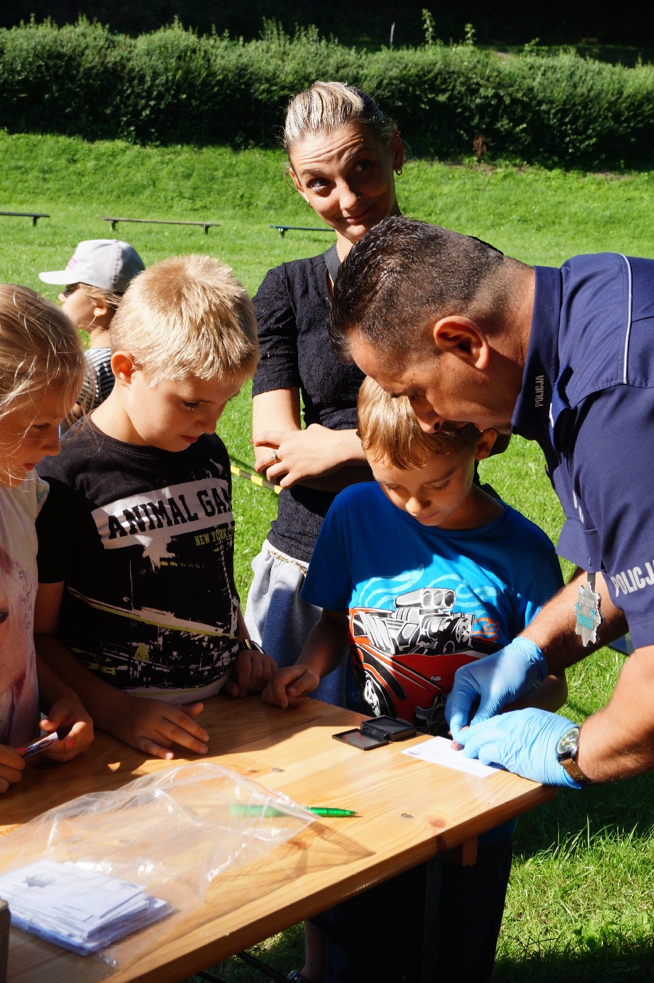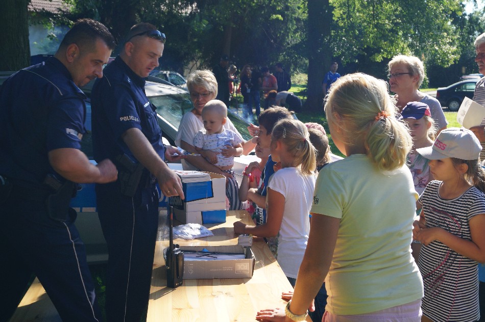 Dzieci miały okazję zapoznać się ze specyfiką pracy policji poprzez program przygotowany przez policjantów z Powiatowej Komendy Policji w Jaworze tj. m.in. pokaz tresury psa, wykonywanie odcisków palców, znakowanie rowerów. Ponadto podczas całego wydarzenia ogromnym zainteresowaniem dzieci małych i dużych cieszyły się warsztaty z tzw. pucholiny poprowadzone przez p. Ewelinę Mazur. Pani Iza Kowalska z KDance Studio z Jawora zabrała dzieci, a także i niektórych dorosłych, w pełną wrażeń i egzotycznych, tanecznych rytmów podróż do Afryki. Program wzbogacony został ponadto o konkursy z nagrodami, wywijańce z dużymi bańkami, pieczone ziemniaki prosto z ogniska, lody, balony, odblaski, słodki i owocowy poczęstunek, a także dwugodzinne zabawy na dmuchańcu.