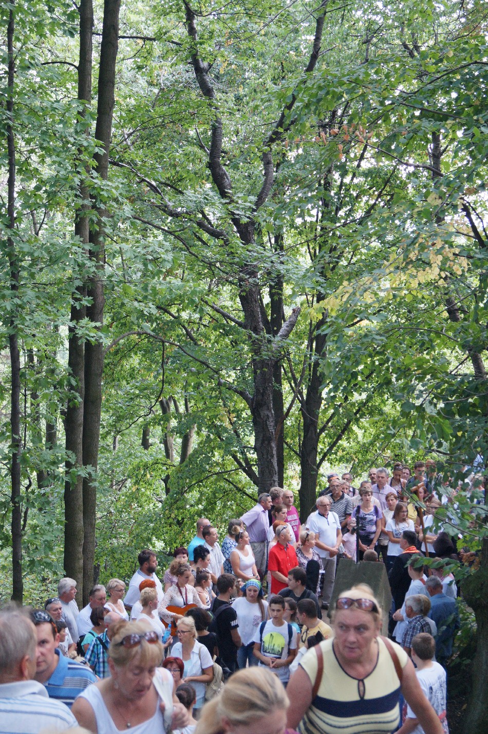 Zgromadzoną społeczność spod kościoła w Męcince na Kalwarię poprowadziły dostojne chorągwie, ufundowana z budżetu gminy Męcinka orkiestra dęta Hanys Band, żołnierze, harcerze, cystersi gminni oraz uczniowie ze szkoły podstawowej z Piotrowic. Wyjątkową chwilą, która zapoczątkowała wejście na Górę Górzec było przejście przez Bramę Miłosierdzia. Na szczycie góry ks. dr Bogusław Wolański Dyrektor Wydziału Duszpasterskiego Legnickiej Kurii Biskupiej odprawił mszę świętą w intencji mieszkańców zamówioną przez Wójta Gminy Męcinka. Po duchowej uczcie, nastąpiła uczta dla ciała, czyli charytatywny piknik rodzinny, podczas którego odbyło się także zakończenie loterii fantowej i losowanie nagród. Na pikniku można było spróbować ciast upieczonych przez gospodynie z gminy Męcinka, tradycyjnej pajdy chleba ze smalcem i ogórkiem, a także kiełbasy z grilla.