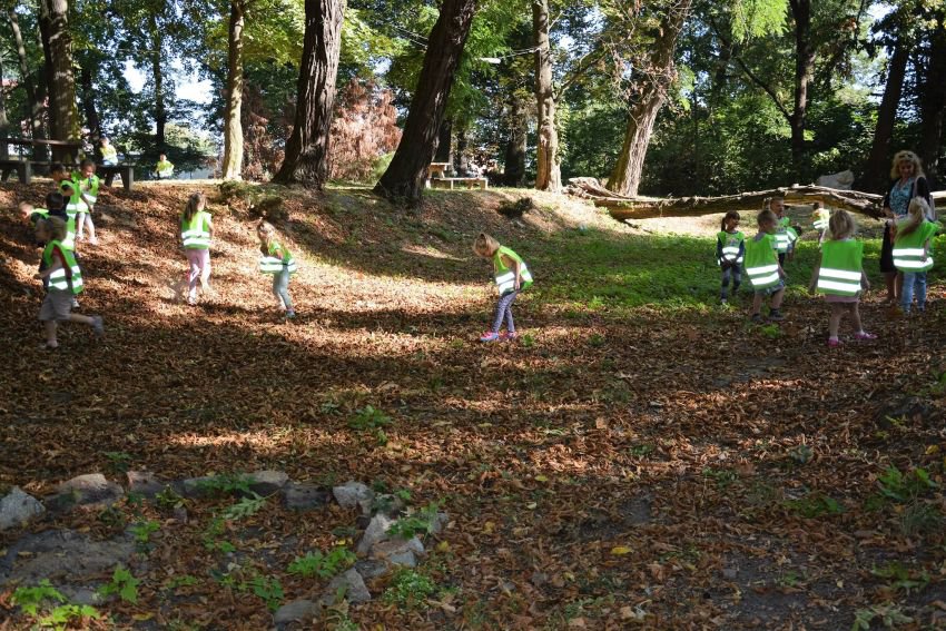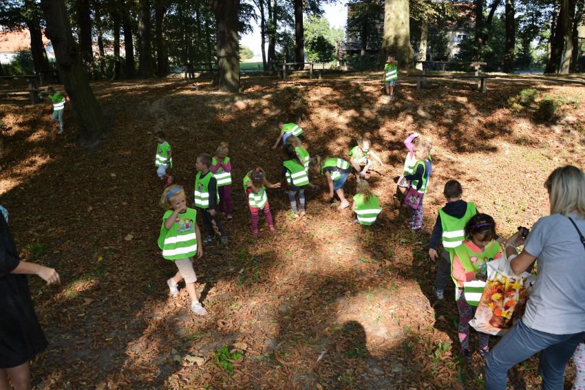 Na powitanie jesieni w ramach zajęć „ Jesień w Parku” przedszkolaki z grupy „ Motylki” i „ Sowy” wybrały się do pobliskiego parku w Piotrowicach. Piękna pogoda dawała możliwość bezpośredniej obserwacji. Przedszkolaki poznały parkowe drzewa i ich liście, nazbierały „jesienne skarby”, które przyniosły do kącika przyrody w przedszkolu. Barwne liście stały się inspiracją do tworzenia prac plastycznych o tematyce jesiennej, które można podziwiać w przedszkolnej galerii.