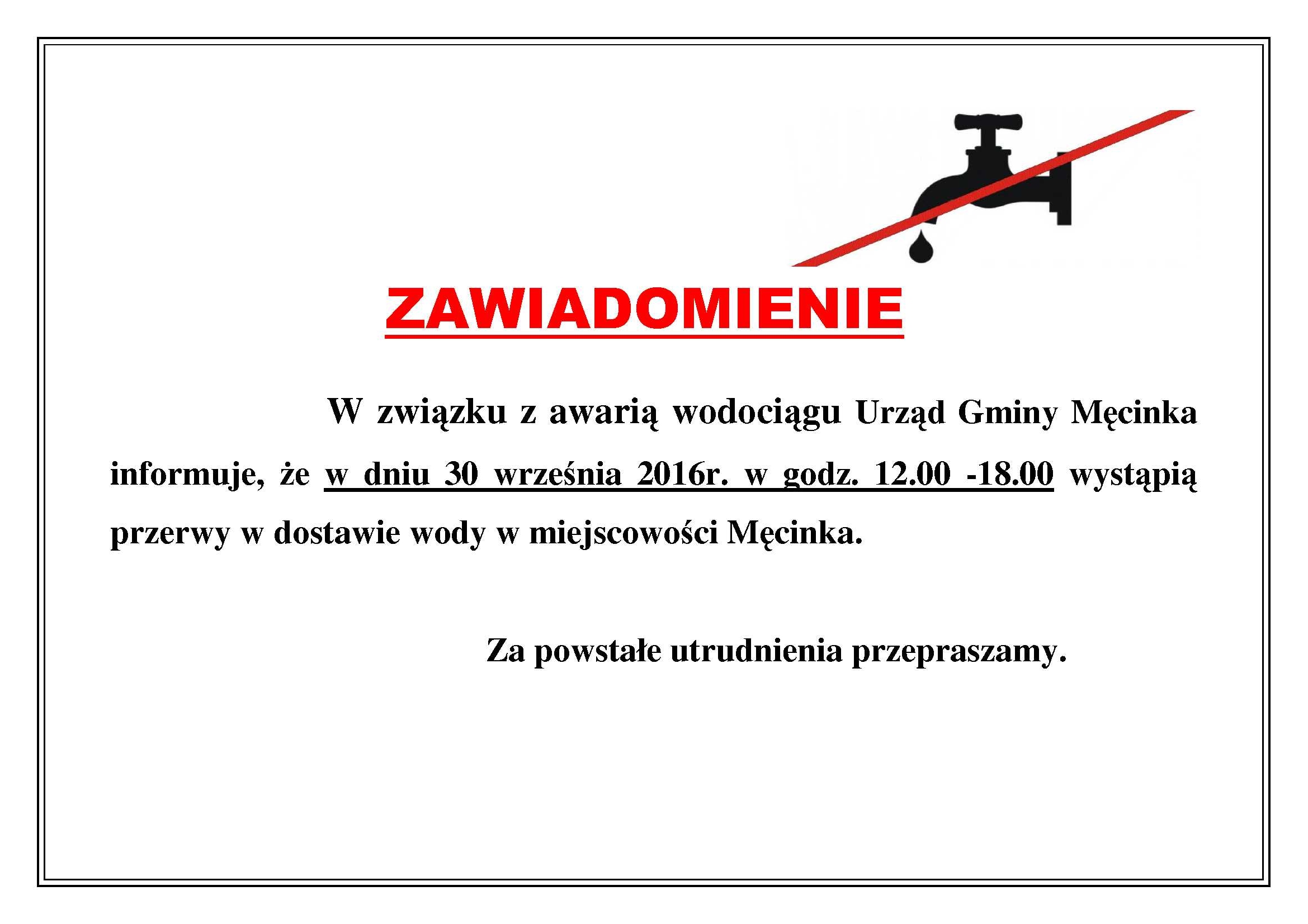 Zawiadomienie o braku wody