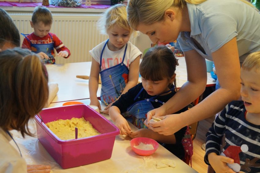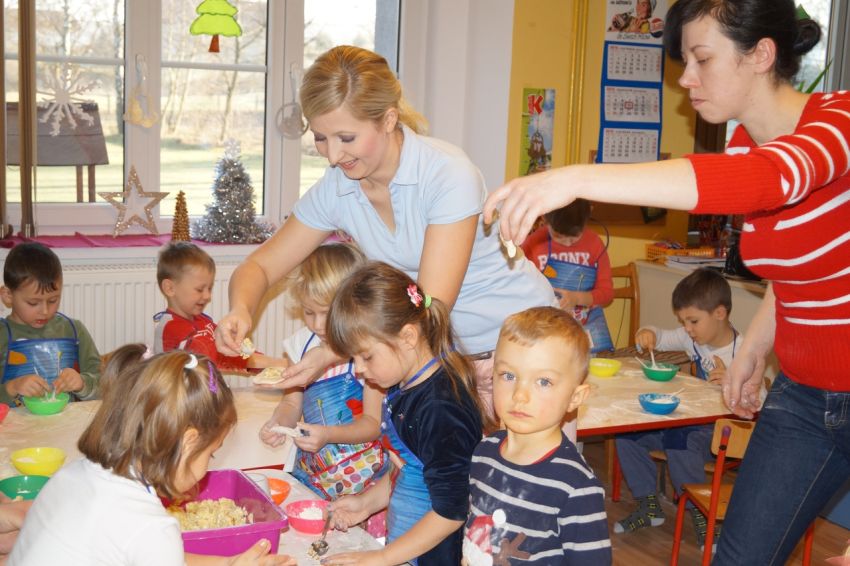 Jednym z głównych dań wigilijnych, które uwielbiają zapewne wszyscy są pierogi z kapustą i grzybami. Jednakże ich wykonanie to nie lada wyczyn. I właśnie takie wyzwanie podjęły przedszkolaki z Niepublicznego Przedszkola „Słoneczko” w Pomocnem. Wraz z dziećmi sztukę tą nabywał wójt Mirosław Brzozowski. Wyrabianie ciasta oraz klejenie pierogów okazało się wspaniałą zabawą dla wszystkich. Nauczycielka przedszkola pani Agata Wojnarowicz przygotowała niezwykle pyszny farsz, który co chwilę smakowały nie tylko przedszkolaki.
