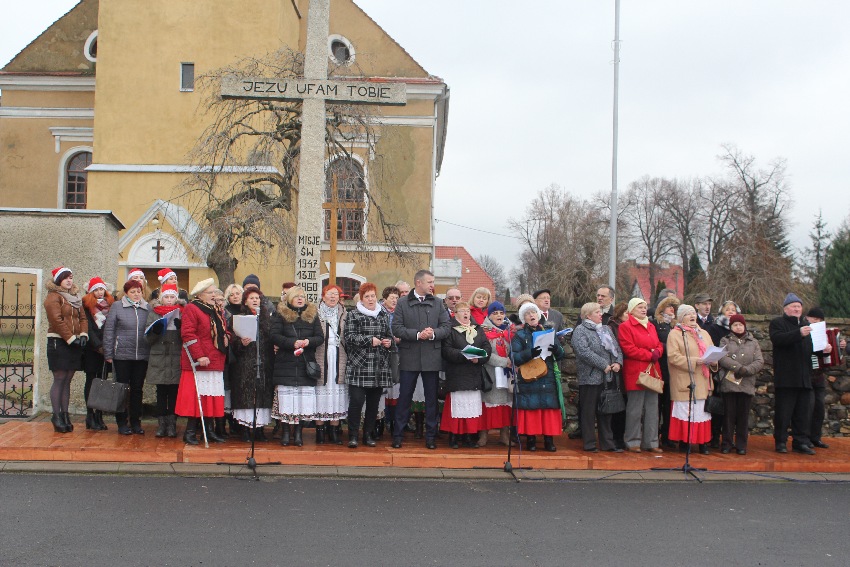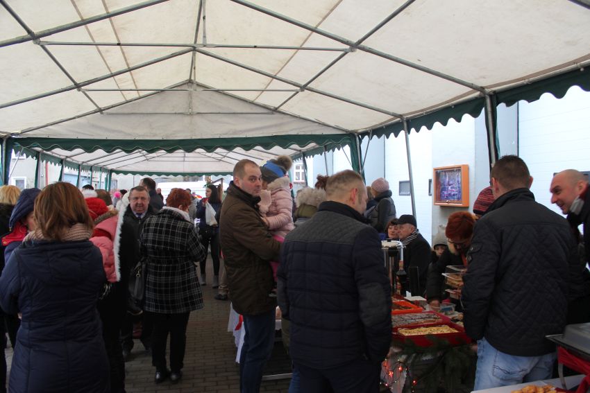 Uroczystość rozpoczął organizator wydarzenia Mirosław Brzozowski Wójt Gminy Męcina składając zgromadzonej społeczności lokalnej życzenia i zapraszając do wspólnego kolędowania. Kolędy rozpoczęły gminne przedszkolaki z Męcinki i Piotrowic, które pokazały wiele talentów muzycznych, ale przede wszystkim odwagę w publicznych występach i wytrwałość w jesienno zimowej aurze. Przepiękny koncert kolęd zaprezentowały zespoły ludowe: Ojry Bis z Męcinki, Chrośliczanie, Rusałki spod Czartowskiej Skałki, Piotrowiczanki, Perły z Przybyłowic oraz zespół strażacki Iskierki z Pomocnego. W życzliwej atmosferze mieszkańcy Gminy Męcinka oraz przyjezdni goście podzielili się opłatkiem oraz smakowali przygotowanych wigilijnych potraw. Tradycją świątecznych spotkań plenerowych jest także jarmark bożonarodzeniowy, na którym mieszkańcy prezentują swoje rękodzieła oraz potrawy lokalne. W tym roku w naszym gminnym jarmarku uczestniczyło sołectwo Przybyłowice, Kondratów, Słup, Stanisławów, Sichów, Muchów, a także Kabaret Żmije z Męcinki, szkoła z Piotrowic, szkoła z Męcinki oraz Jan Nowak z Męcinki. Specjalną atrakcją dla dzieci był wielbłąd, na którym dzieci mogły jeździć do woli.
