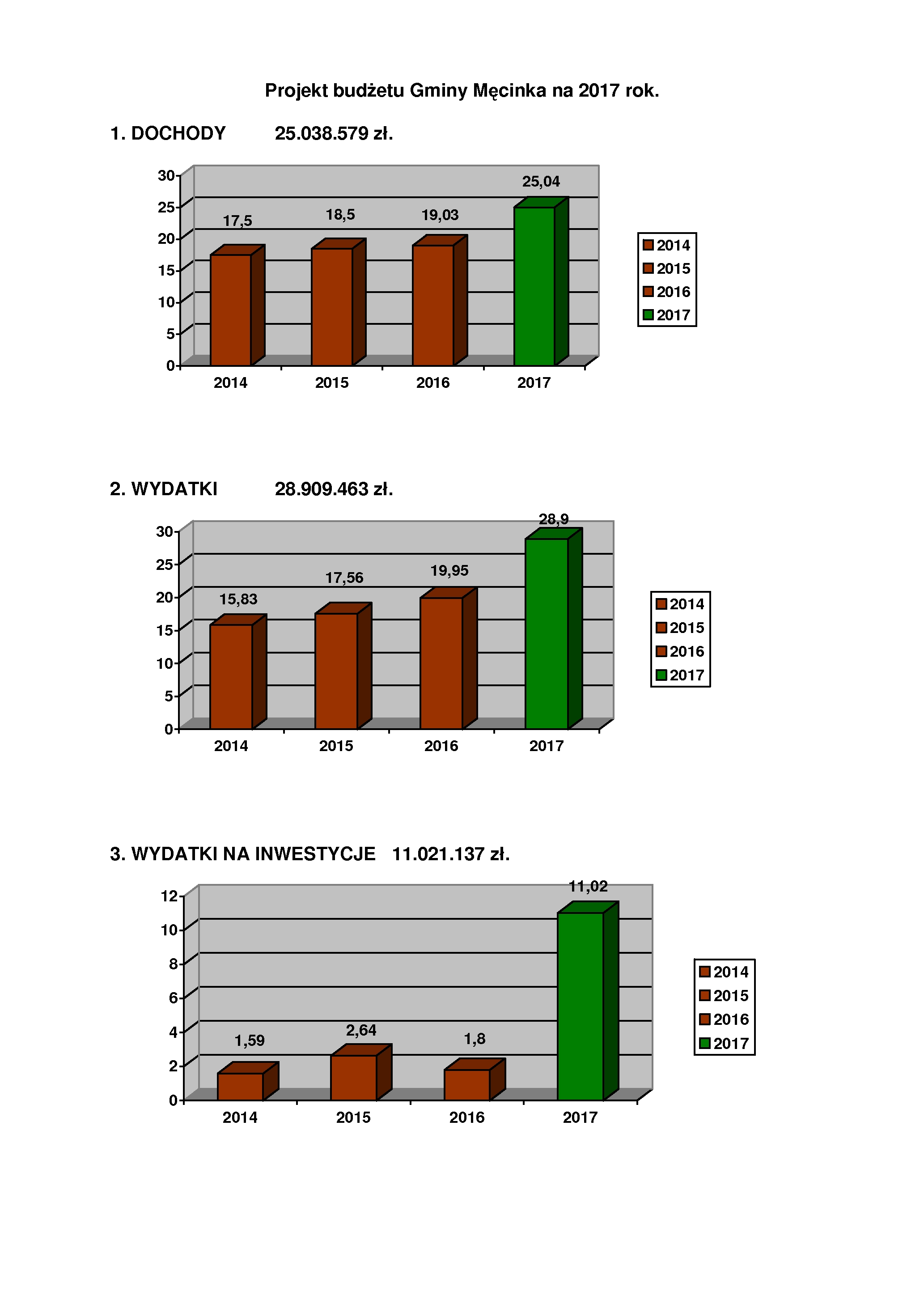 Ogółem budżet Gminy Męcinka na 2017 r. wyniesie 28 909 463 mln. zł.