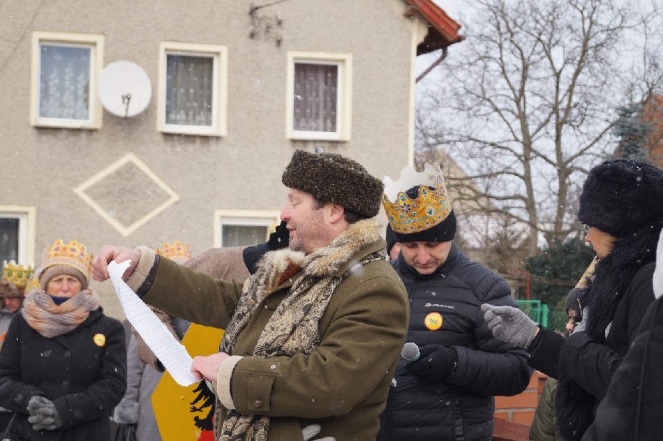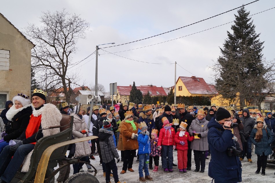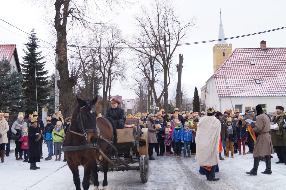 W tym roku w związku z 750 rocznicą bulli kanonizacyjnej w orszaku towarzyszyła także królowa- św. Jadwiga. Po zakończeniu Mszy św. Mędrcy ze Wschodu wraz z królową św. Jadwigą oraz mieszkańcami gminy i sąsiednich miejscowości podążali w orszaku do amfiteatru na wspólne kolędowanie. Podczas orszaku zaprezentowane zostały trzy scenki z życia św. Jadwigi, które przygotowali dorośli mieszkańcy gminy pod kierunkiem Zespołu Szkolno-Przedszkolnego z Piotrowic. Symbolem Orszaku Trzech Króli stały się papierowe korony, które rozdawane były uczestnikom Orszaku wraz z okolicznościowymi naklejkami i śpiewnikami kolęd. Wyjątkową chwilą podczas wspólnego kolędowania były jasełka w wykonaniu dzieci z Zespołu Szkół w Męcince.