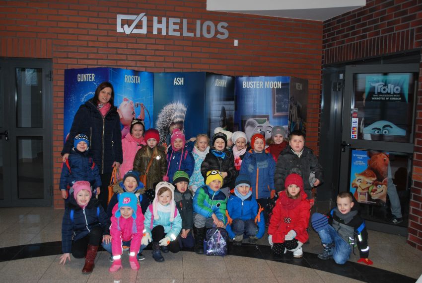 Dnia 31.01.2017r. przedszkolaki z grupy „Motylki” i „Sowy” wybrały się na wycieczkę do Kina Helios w Legnicy. Celem wycieczki było nabywanie umiejętności uczestniczenia w seansach filmowych, ale również wdrażanie do właściwych zachowań podczas pobytu w kinie, stwarzanie sytuacji aktywizujących procesy myślowe – rozumienie wartości takich jak: dobro, prawda, przyjaźń. Dzieci miały okazję obejrzeć bajkę pt. „Sing”. Animowana komedia-musical to opowieść o poszukiwaniu gwiazdy, którą każdy z nas ma w sobie.