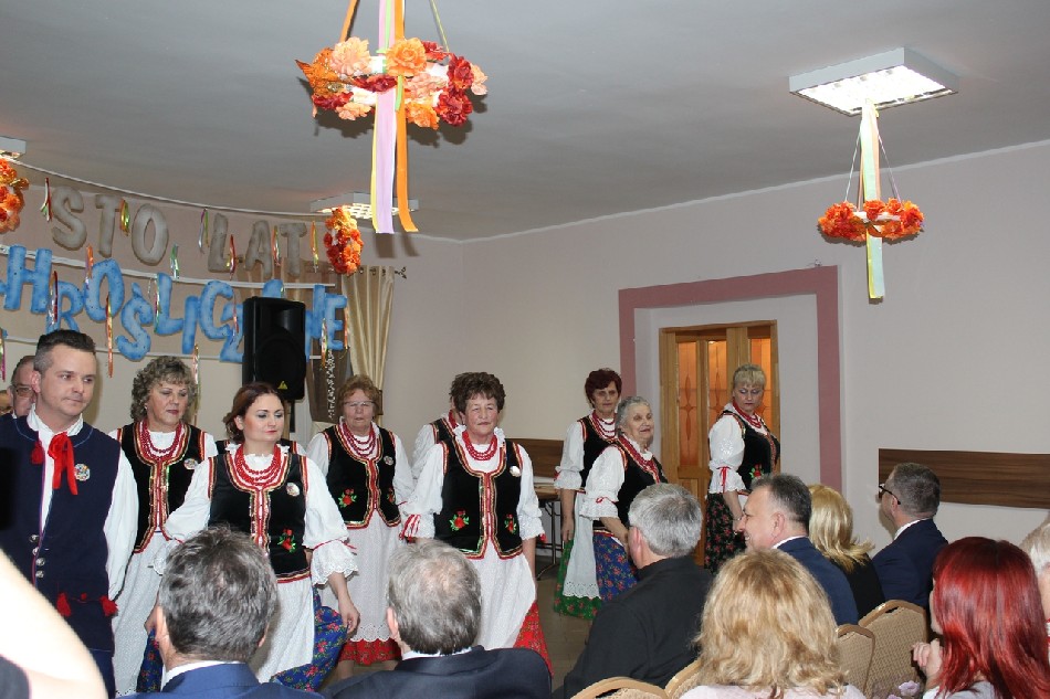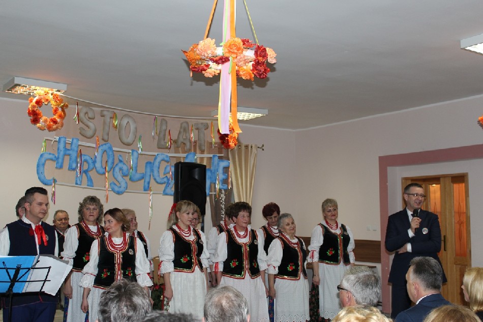 „Funkcjonowanie w zespole muzycznym - ludowym to nie tylko miłe koncerty, brawa, zdobyte trofea…. Funkcjonowanie w zespole ludowym to wyjęte chwile z życia domowego, to poświęcony czas dla mieszkańców, przyjaciół i sąsiadów…. Funkcjonowanie w zespole ludowym to łzy radości, ale i chwile trudne, to umiejętność współpracy z innymi ludźmi, to sztuka kompromisów… To czasem sposób na spędzenie wolnego czasu, a czasem ucieczka przed samotnością…. Funkcjonowanie w zespole to nawiązywanie przyjaźni, być może miłości ….. to również pożegnanie z tymi co już odeszli. Funkcjonowanie w takim zespole to po prostu …. kawał historii życia. I dziś jubileusz tej historii obchodzicie Kochani Chrosliczanie. To jubileusz istnienia zespołu, ale przede wszystkim jubileusz ważnego etapu życia każdego z Was. Życzę Wam Kochani Chrośliczanie dalszych lat owocnej twórczości. Przyjmijcie proszę także życzenia wszelkiej pomyślności w życiu osobistym. Życzenia te i podziękowania kieruję również do Waszych rodzin” – powiedział podczas uroczystości wójt M. Brzozowski.