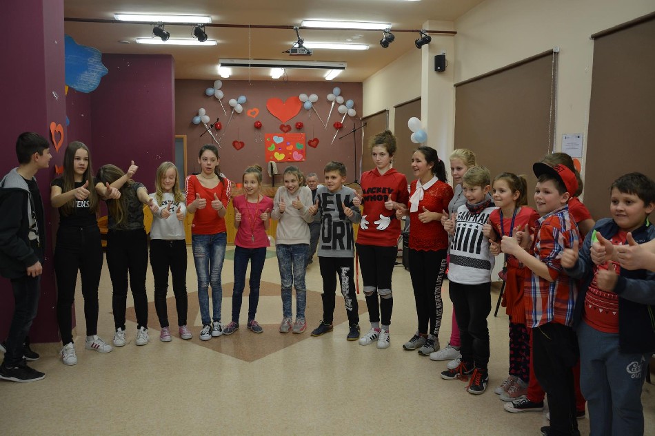 Dla miłośników muzyki oraz dobrej zabawy przeprowadziliśmy szkolną dyskotekę. Wszyscy tańczyli i świetnie się bawili, co widać na zdjęciach. Dopełnieniem tej całości był Szkolny Konkurs na Najpiękniejsze Serce z byle czego. Wzięło w nim udział aż 40 uczniów z naszej szkoły i przedszkola !!! Pomysły naszych wychowanków wprawiały w zakłopotanie jury, które miało wielki problem by wyłonić zwycięzców. Ostatecznie w konkursie zwyciężyli: