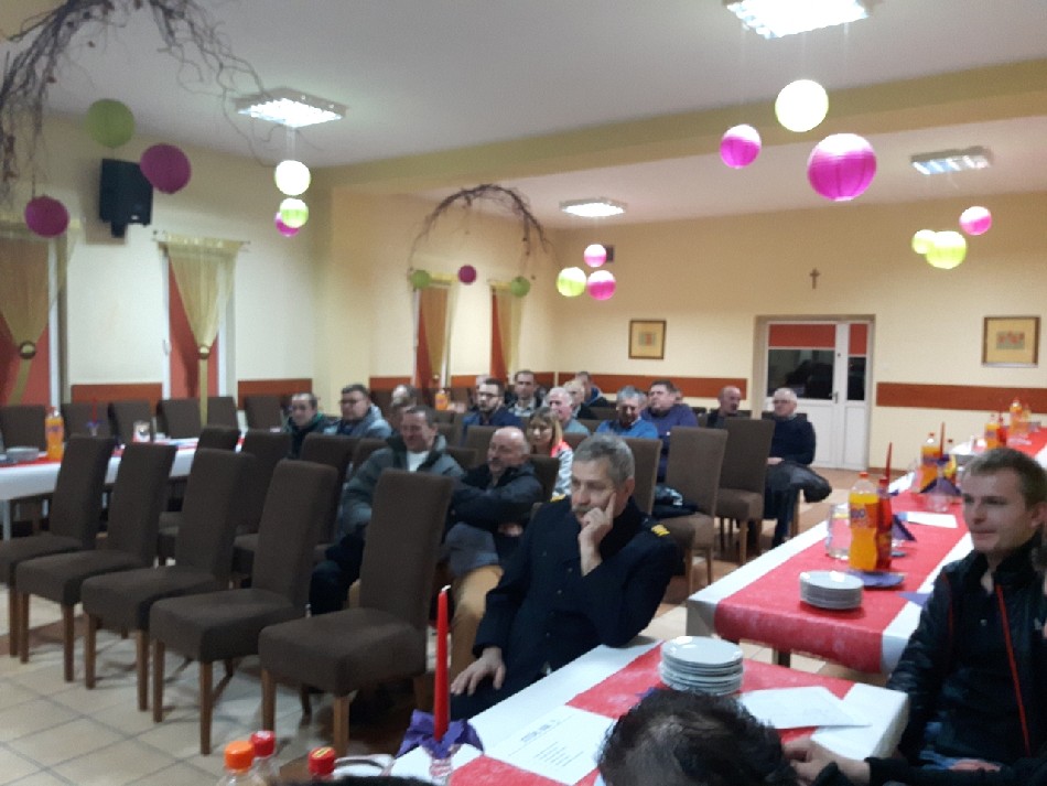 „Na dzisiejsze zebranie przyszedłem do Was z ważną informacją. Jako Gmina pozyskaliśmy ze środków unijnych ponad pół miliona złotych i już w tym roku dostaniecie nowy samochód ratowniczo – gaśniczy" – poinformował wójt, który ponadto wręczył druhom sześć dodatkowych bluz strażackich.