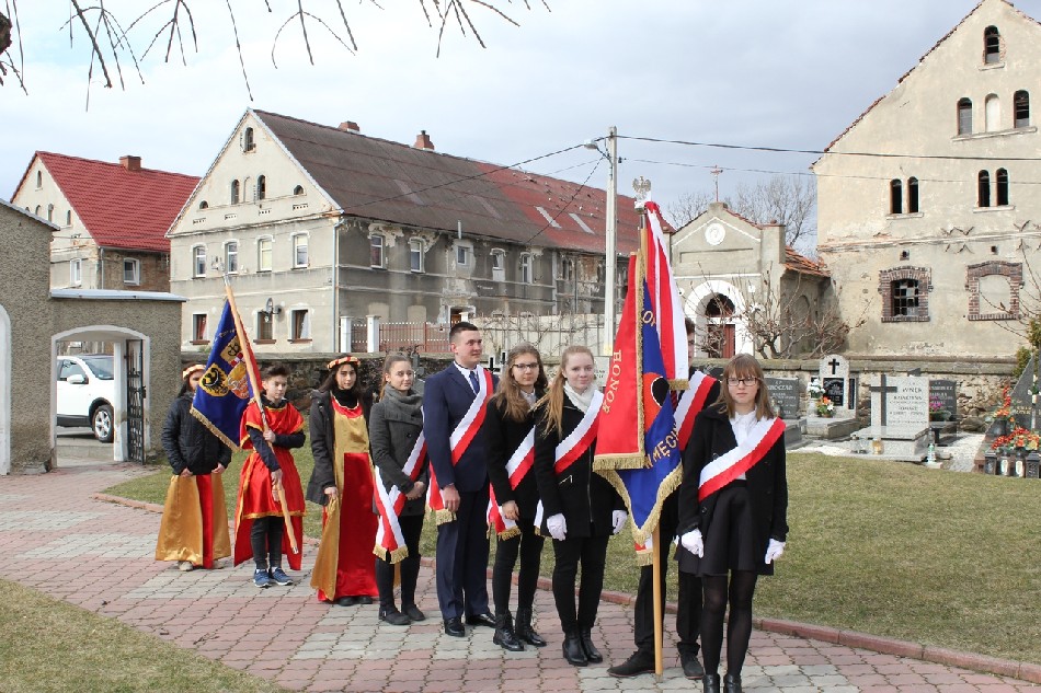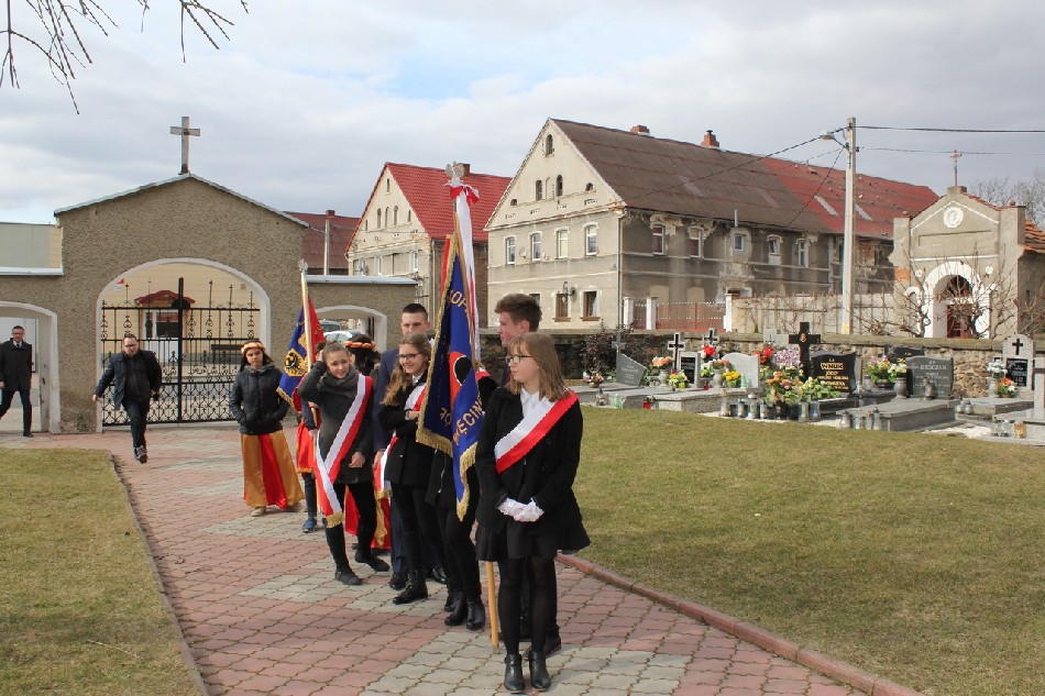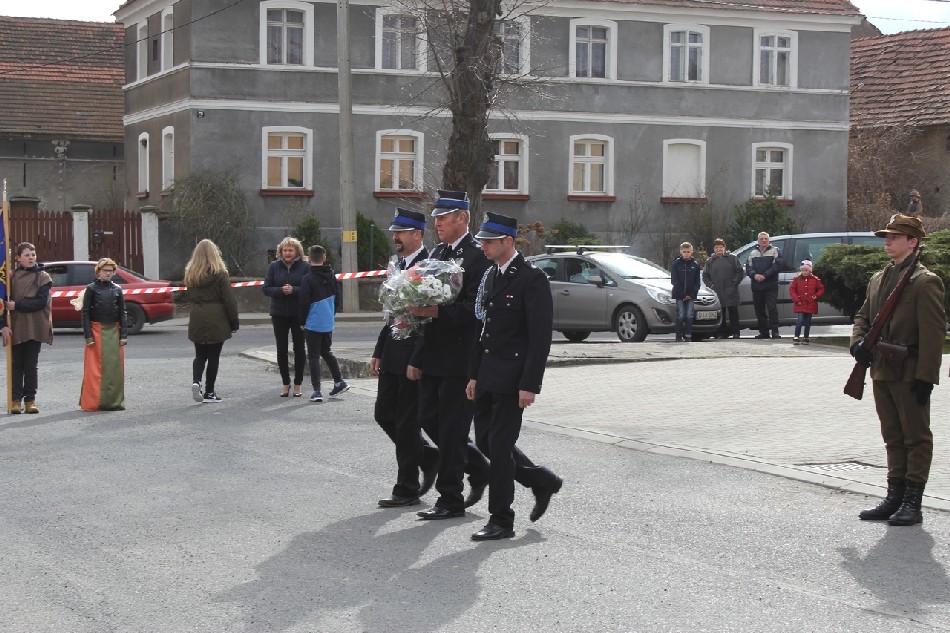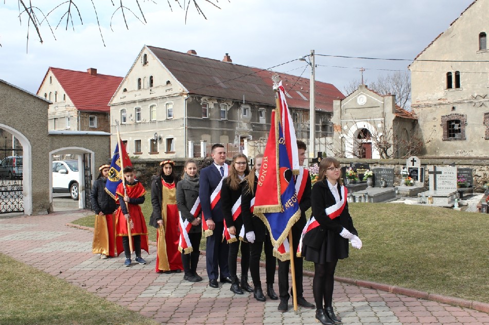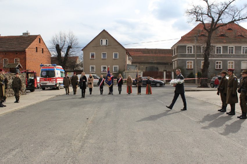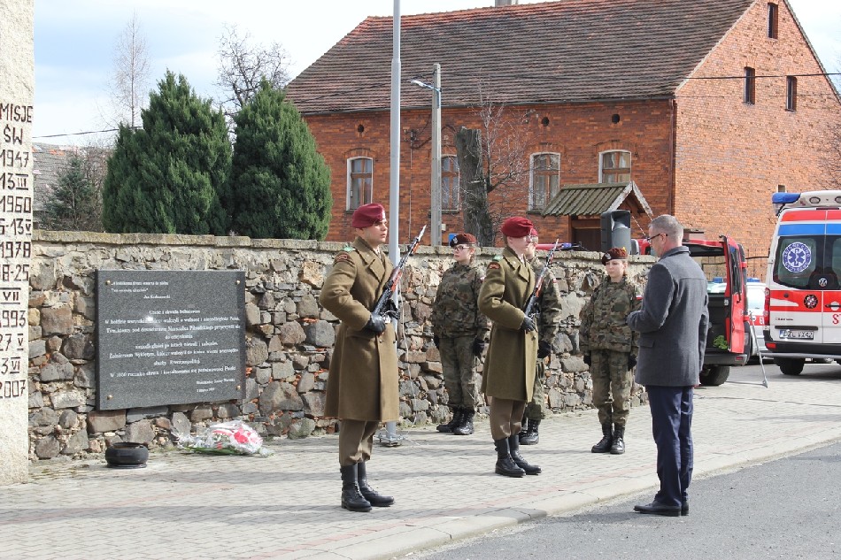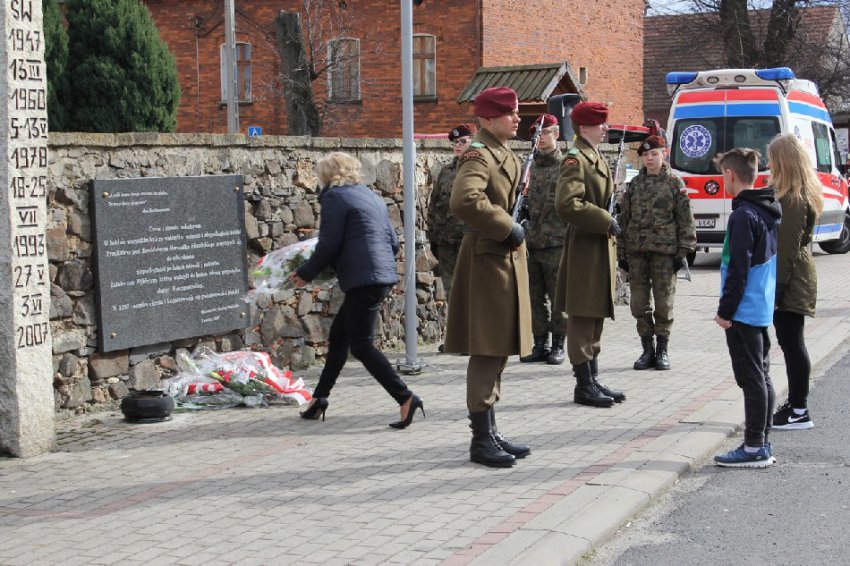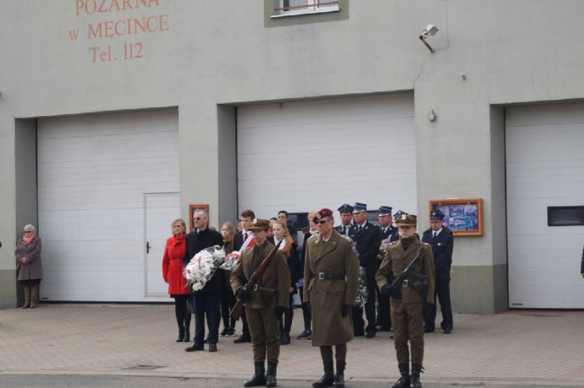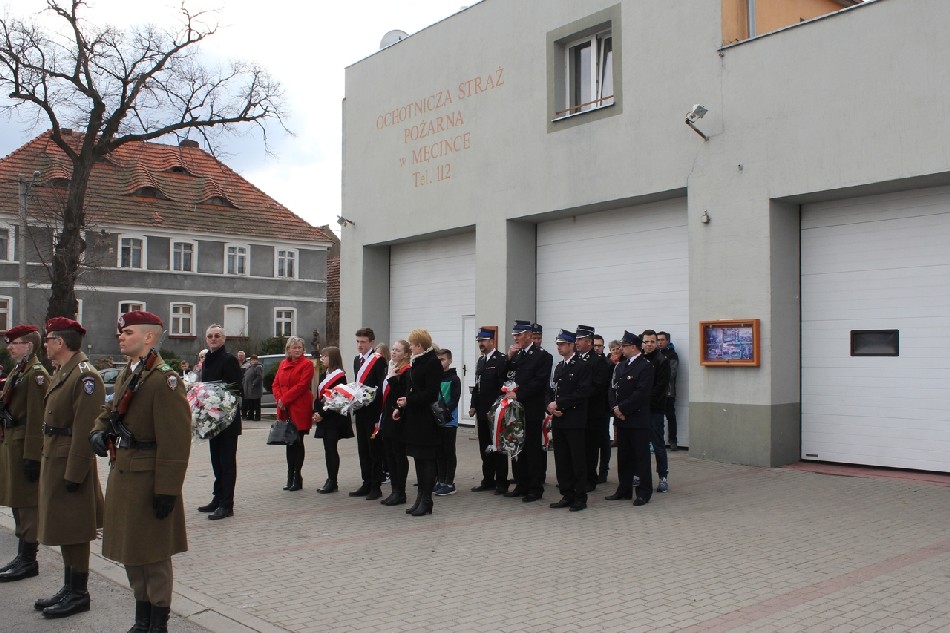 Symboliczne wiązanki pod tablicą upamiętniającą Walczących za Wolną Polskę złożone zostały przez Wójta Gminy Męcinka Mirosława Brzozowskiego, Przewodniczącego Rady Gminy Męcinka Wojciecha Lichonia, delegacje szkół Gminy Męcinka, delegacje OSP Pomocne, OSP Przybyłowice oraz OSP Męcinka.
