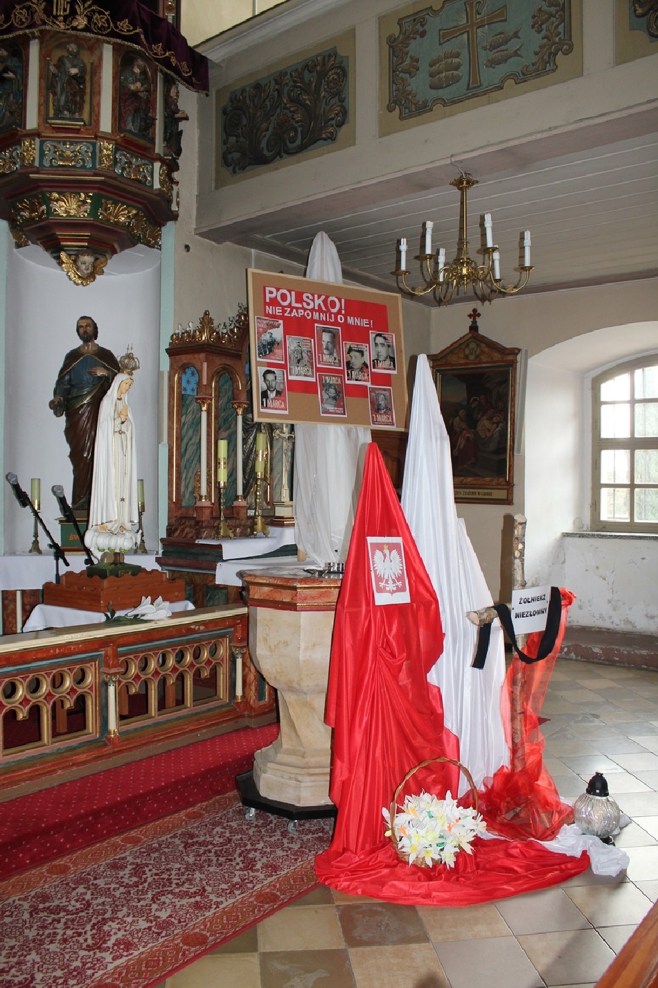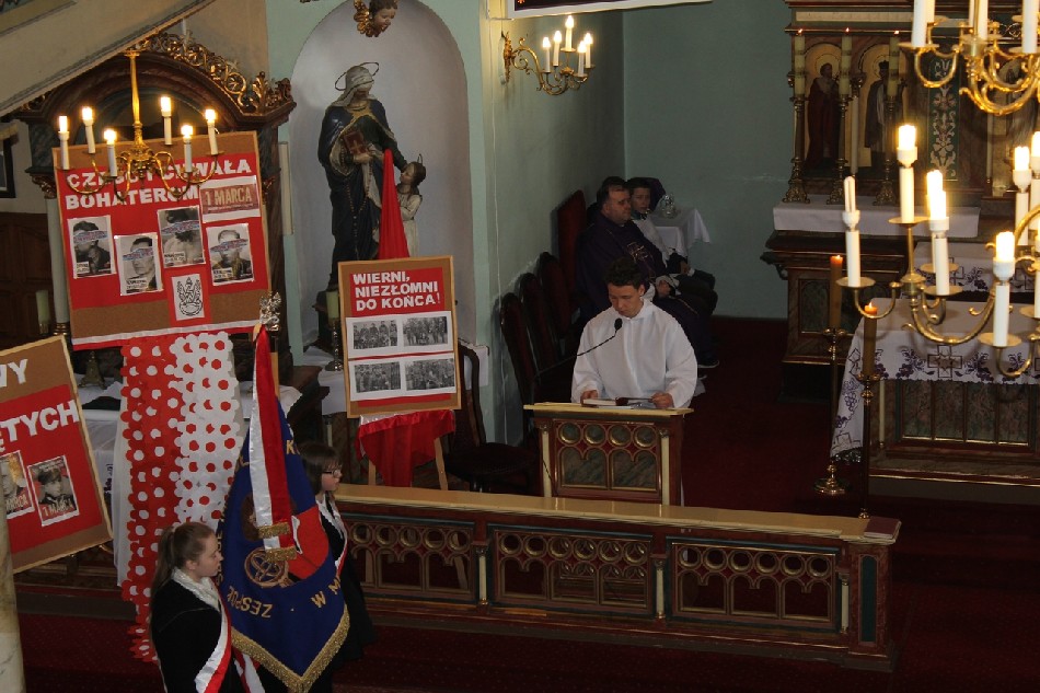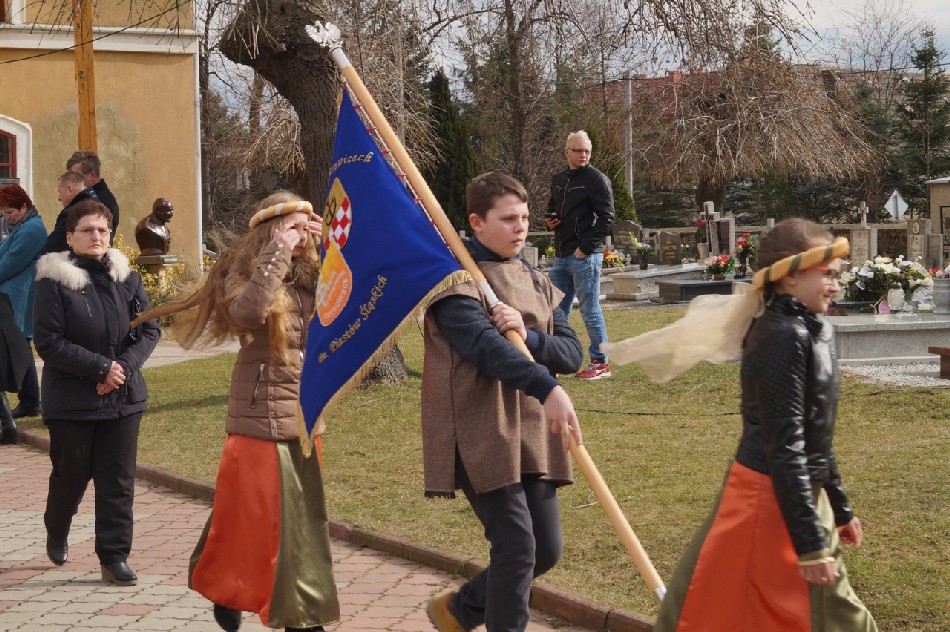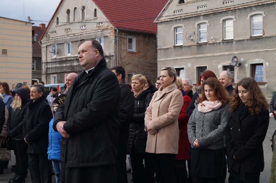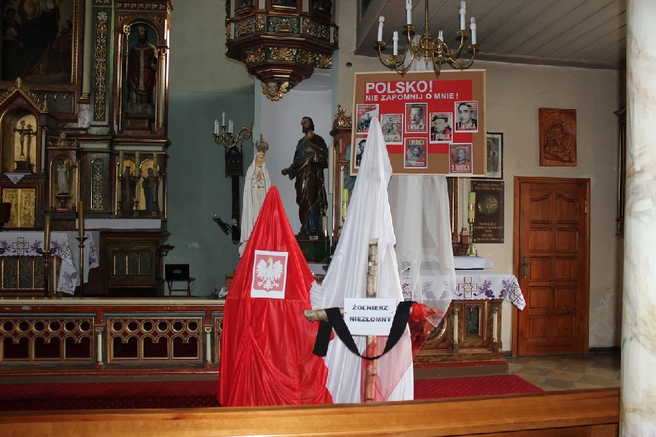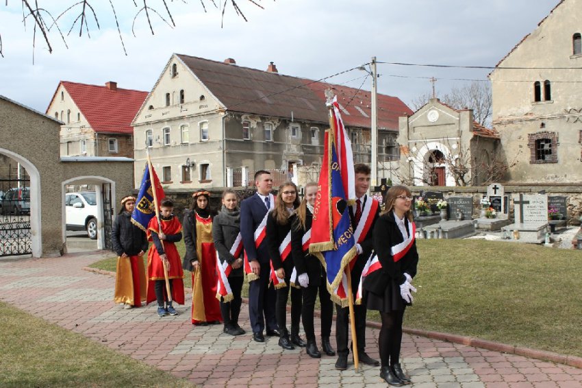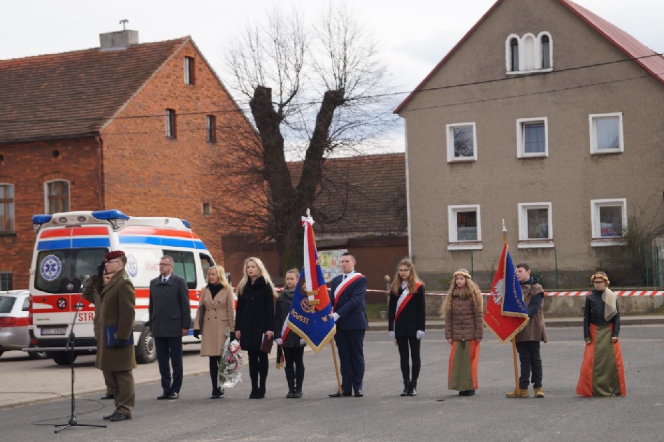 Symboliczne wiązanki pod tablicą upamiętniającą Walczących za Wolną Polskę złożone zostały przez Wójta Gminy Męcinka Mirosława Brzozowskiego, Przewodniczącego Rady Gminy Męcinka Wojciecha Lichonia, delegacje szkół Gminy Męcinka, delegacje OSP Pomocne, OSP Przybyłowice oraz OSP Męcinka.