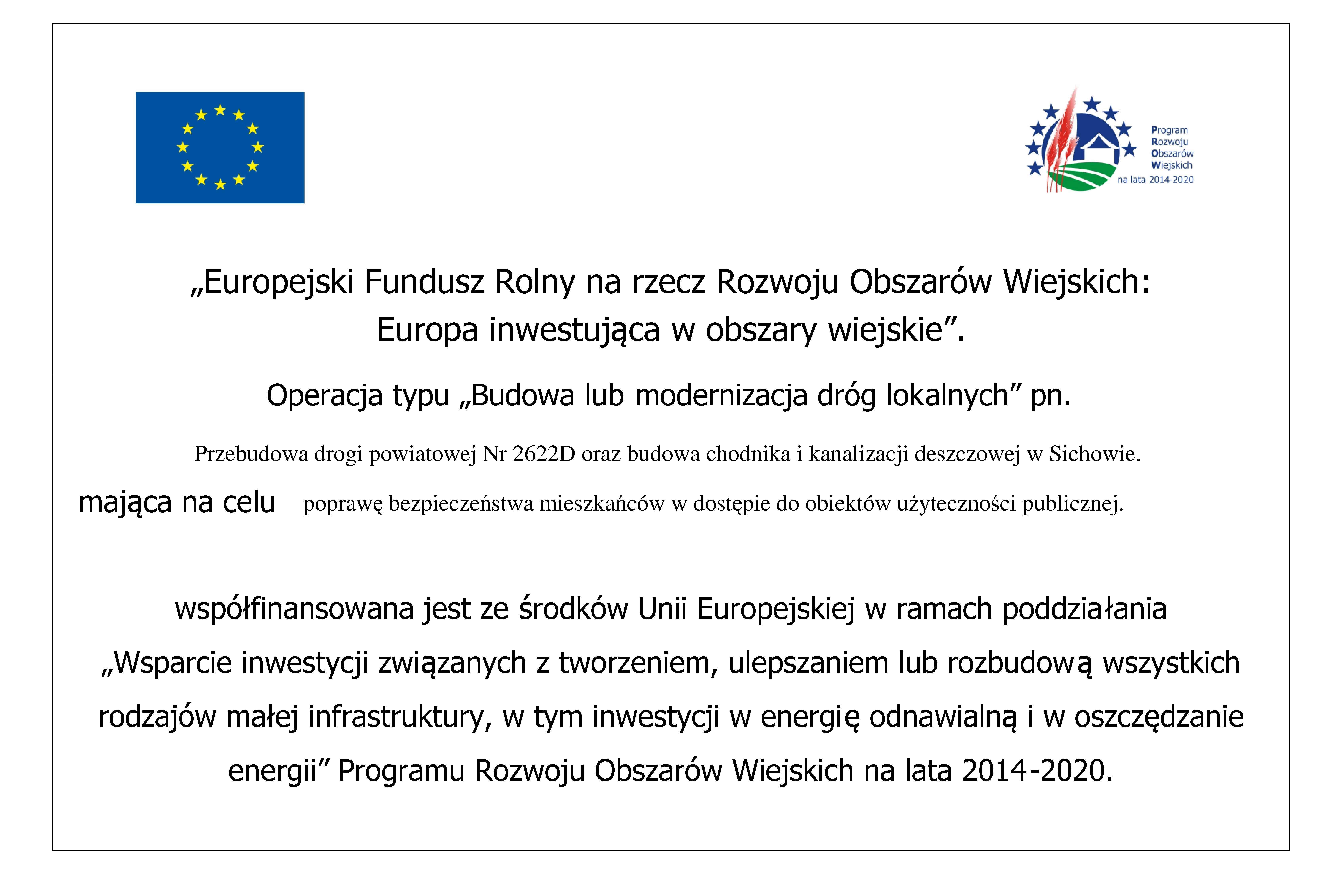 Już niebawem w Sichowie rozpocznie się realizacja dużej inwestycji polegającej na przebudowie drogi o długości 1,6 km oraz budowie chodnika i kanalizacji deszczowej.