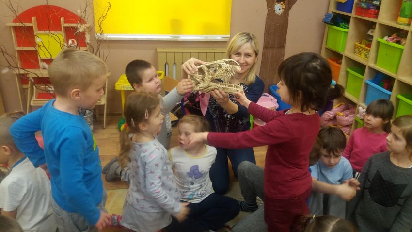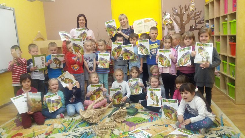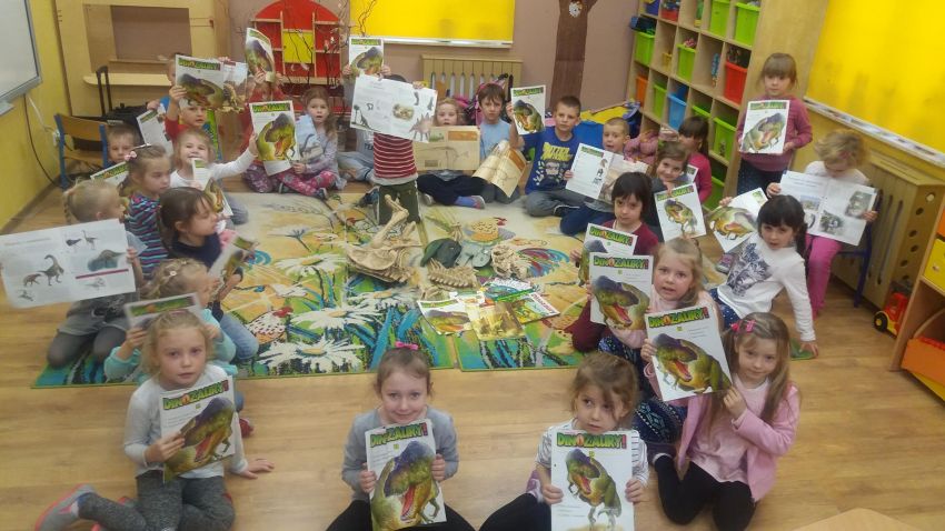 Dzieci z grupy „ Motylki” i „ Sowy” w ramach zajęć „ Czy żyły dinozaury?” pogłębiły wiadomości na temat dinozaurów oraz wzbudziły swoje zaciekawienie prehistorią. Podczas działań dydaktycznych przedszkolaki miały okazję obejrzeć film edukacyjny dotyczący tych olbrzymich zwierząt. Poznały najbardziej znane gatunki, dowiedziały się, co mogło być przyczyną ich wyginięcia oraz zdobyły wiele innych ciekawych informacji.